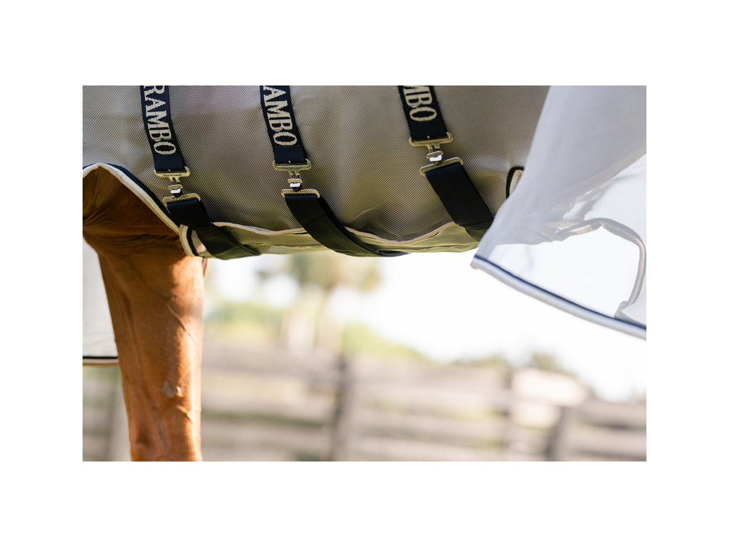 Unikátna deka zo sieťoviny proti hmyzu Rambo Protector Integrated, dodávaná vrátane integrovaného krčného dielu. Krčný diel sa nedá odopnúť a poskytuje ešte lepšiu ochranu pred hmyzom. Okrem ochrany pred hmyzom deka zároveň poskytuje 65% ochranu pred UV žiarením. Vyrobená z jedinečného a patentovaného sieťového materiálu, ktorý je priedušný, extrémne odolný a vydrží mnoho sezón. Deka poskytuje maximálny komfort a pohodlie. Predná časť je vybavená praktickým a jednoduchým zapínaním v tvare V. Má tiež plné pokrytie pod bruchom vrátane trojitého zapínania, popruh pod chvostom, predĺženú ochranu chvosta a anatomický strih v oblasti nôh. K deke je možné dokúpiť samostatne masku proti hmyzu a vnútorný nepremokavý liner.