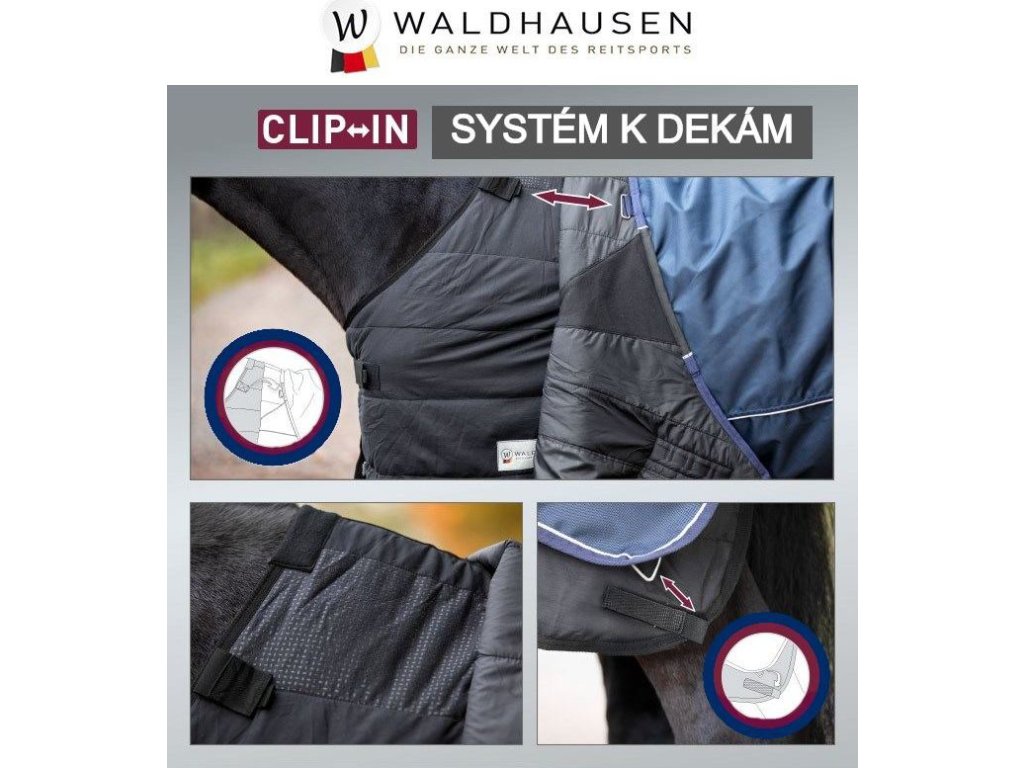 Pomocou tejto teplej a priedušnej poddeky si môžete zvoliť gramáž deky, ktorú Váš kôň práve potrebuje. Vďaka dvom elastickým popruhom na suchý zips ho možno ľahko pripevniť k deke alebo pláštenke. Deka je vyrobená z antipillingového rúna. Poddeka je vybavená jednoduchým T-zapínaním na hrudi so suchým zipsom. Na kohútiku je mäkké polstrovanie pre väčšie pohodlie. Táto poddeka skvele pasuje k dekám Waldhausen Economic, Comfort a Premium.