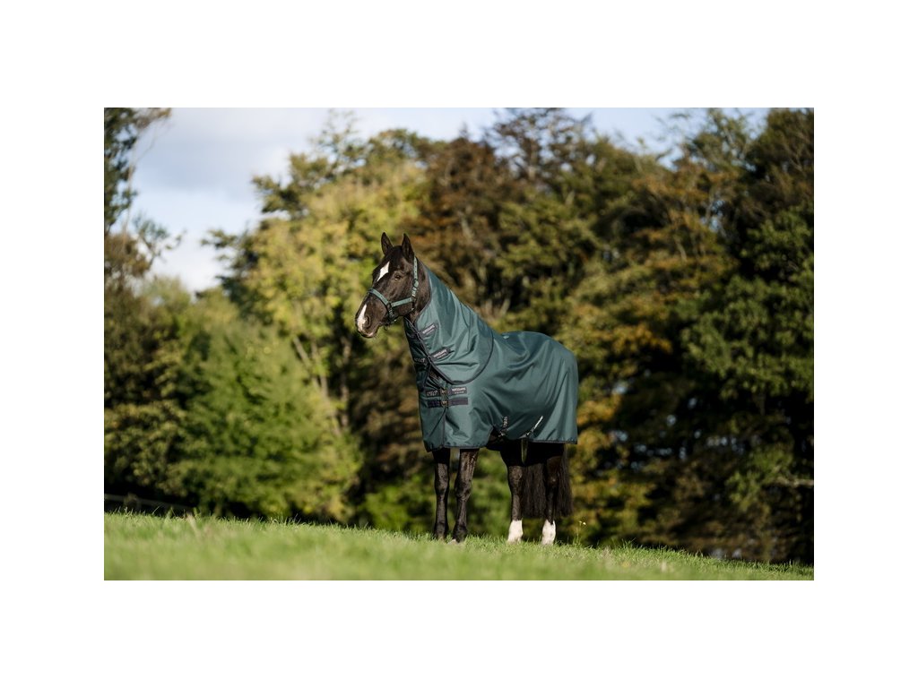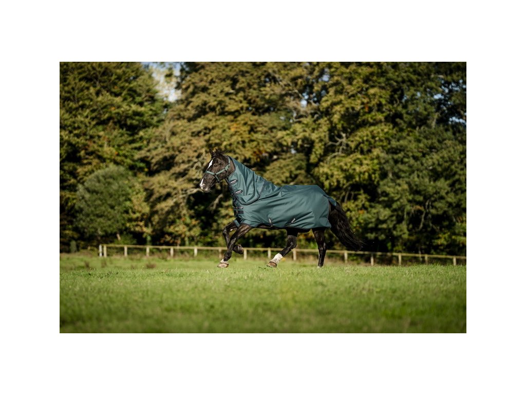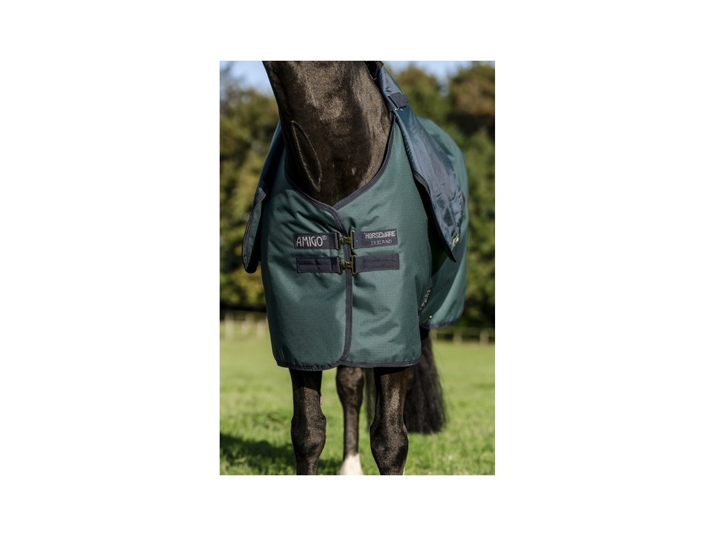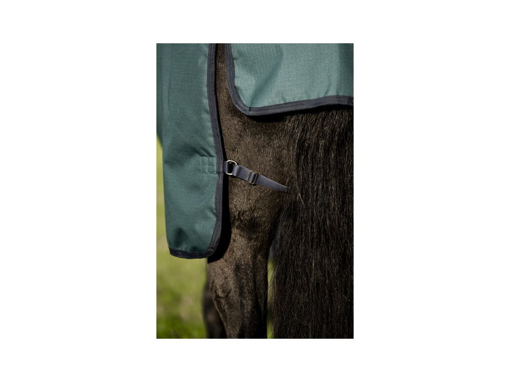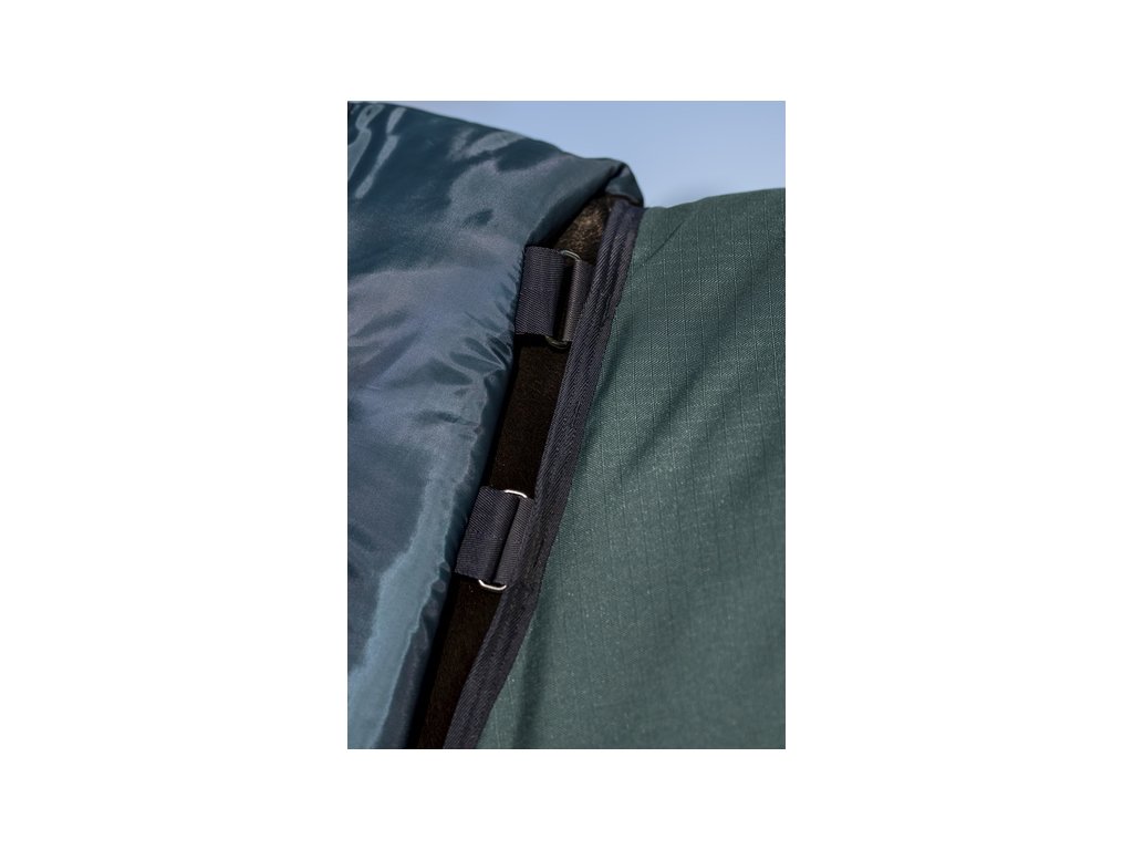 Vysokokvalitná výbehová deka Amigo s odnímateľným krčným dielom, oboje so zateplením 200 g. Vyrobená z nepremokavého, priedušného a odolného polyesterového Rip-Stop materiálu (pevnosť 900 D). Je podšitá hladkou polyesterovou podšívkou, ktorá je šetrná k pokožke a chráni pred odieraním. Podšívka ponúka tiež antibakteriálne a antistatické vlastnosti. Ďalej je vybavená predným dvojitým zapínaním, krížovým zapínaním pod bruchom, popruhom pod chvostom a ochranou chvosta. Anatomický strih v oblasti nôh poskytuje maximálne pohodlie. Deka je kompatibilná s liner systémom.