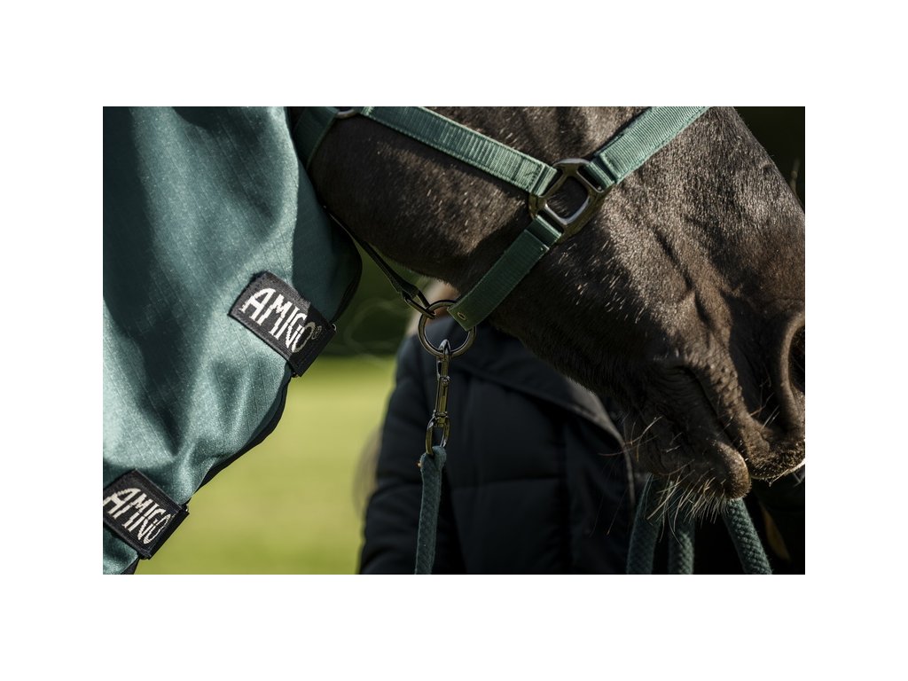 Výbehová deka Amigo Ripstop Plus pre poníky so zateplením (200 g), ktorá ponúka spoľahlivú ochranu v premenlivom počasí. Dodáva sa s odnímateľným krčným dielom. Je vyrobená z nepremokavého, priedušného a odolného polyesterového materiálu 900D ripstop. Hladká polyesterová podšívka je šetrná k pokožke, chráni pred odieraním a má antibakteriálne a antistatické vlastnosti. Deka je vybavená predným dvojitým zapínaním, krížovým zapínaním pod bruchom, popruhom pod chvostom a ochranou chvosta. Anatomický strih v oblasti nôh zaručuje maximálne pohodlie pri pohybe. Deka je kompatibilná s liner systémom.