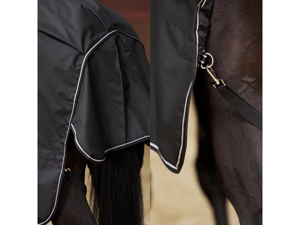 Výbehová deka s výplňou 200 g a odnímateľným krčným dielom poskytuje spoľahlivú ochranu a komfort v nepriaznivom počasí. Kombinuje funkčnosť, odolnosť a moderný vzhľad. Odolný, nepremokavý vrchný materiál s pevnosťou 600 D chráni pred dažďom aj vetrom, zatiaľ čo hrejivá výplň zaisťuje tepelný komfort. Deka je vybavená dvojitým predným zapínaním na T-pracky, nastaviteľným krížovým zapínaním pod bruchom a popruhmi medzi zadné nohy.