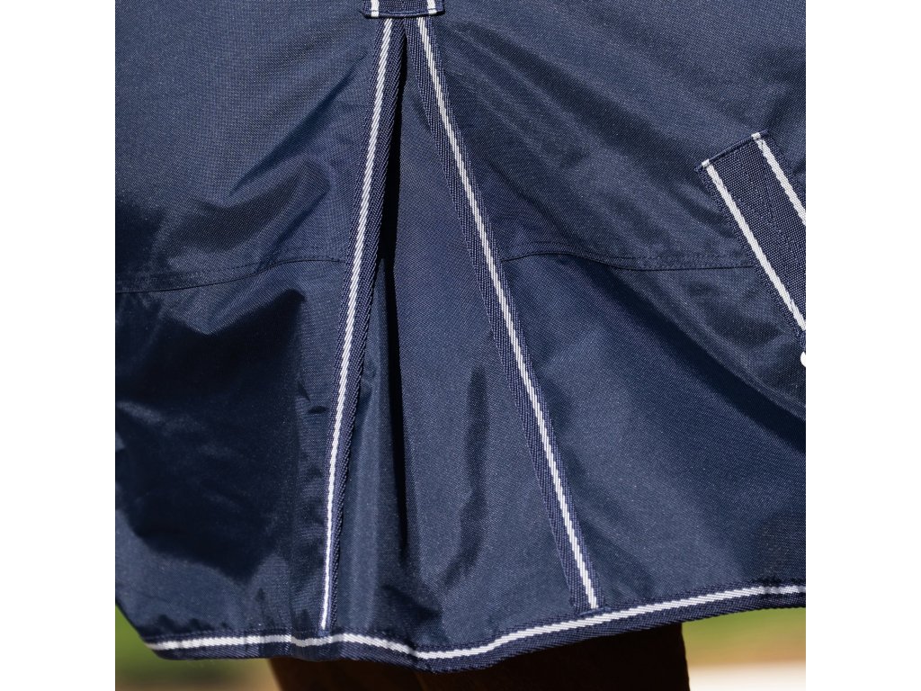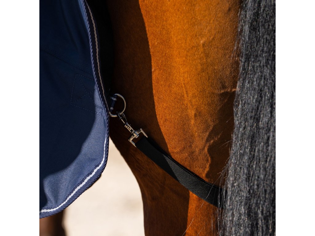 Výbehová deka s vyšším krkom a zateplením 200 g poskytuje spoľahlivú ochranu a komfort v nepriaznivom počasí. Kombinuje funkčnosť, odolnosť a moderný vzhľad. Odolný, nepremokavý vrchný materiál s pevnosťou 600 D chráni pred dažďom aj vetrom, zatiaľ čo hrejivá výplň zabezpečuje pohodlie pri celodennom nosení. Deka je vybavená dvojitým predným zapínaním na T-pracky, nastaviteľným krížovým zapínaním pod bruchom a popruhmi medzi zadné nohy.
