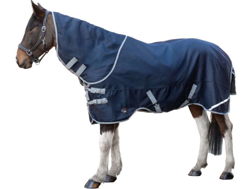 Kvalitná výbehová deka so zateplením 200 g a s odnímateľným krčným dielom poskytuje vášmu koňovi spoľahlivú ochranu aj v náročných podmienkach. Deka aj krk sú vyrobené z priedušného a vetruvzdorného materiálu s priedušnosťou 3 000 ml/m²/24 hod. Vodoodolnosť testovaná v Nemecku zaručuje vysokú kvalitu a dlhú životnosť. Predné zapínanie v tvare V je flexibilné a zaistené dvojitým suchým zipsom. Pod bruchom sa nachádza krížové zapínanie a nastaviteľné a odnímateľné popruhy medzi nohy. Podlepené švy a hladká podšívka zvyšujú komfort pri nosení. Bezpečnosť zvyšujú reflexné prúžky.Deku je možné prať pri 30° a sušiť v sušičke.