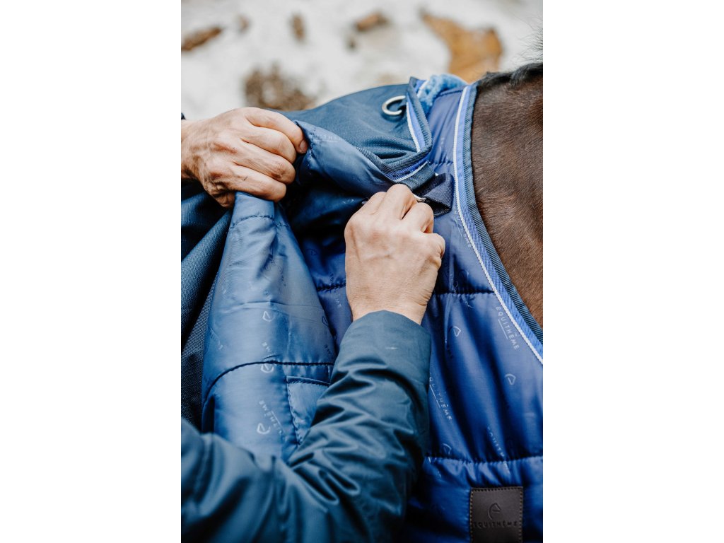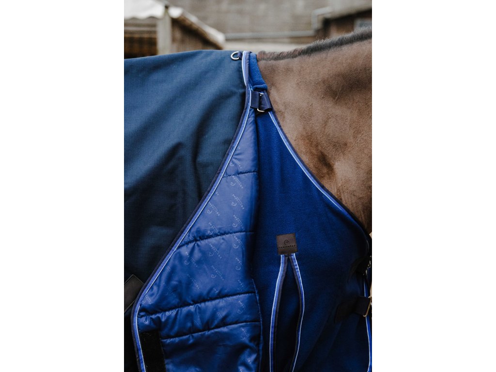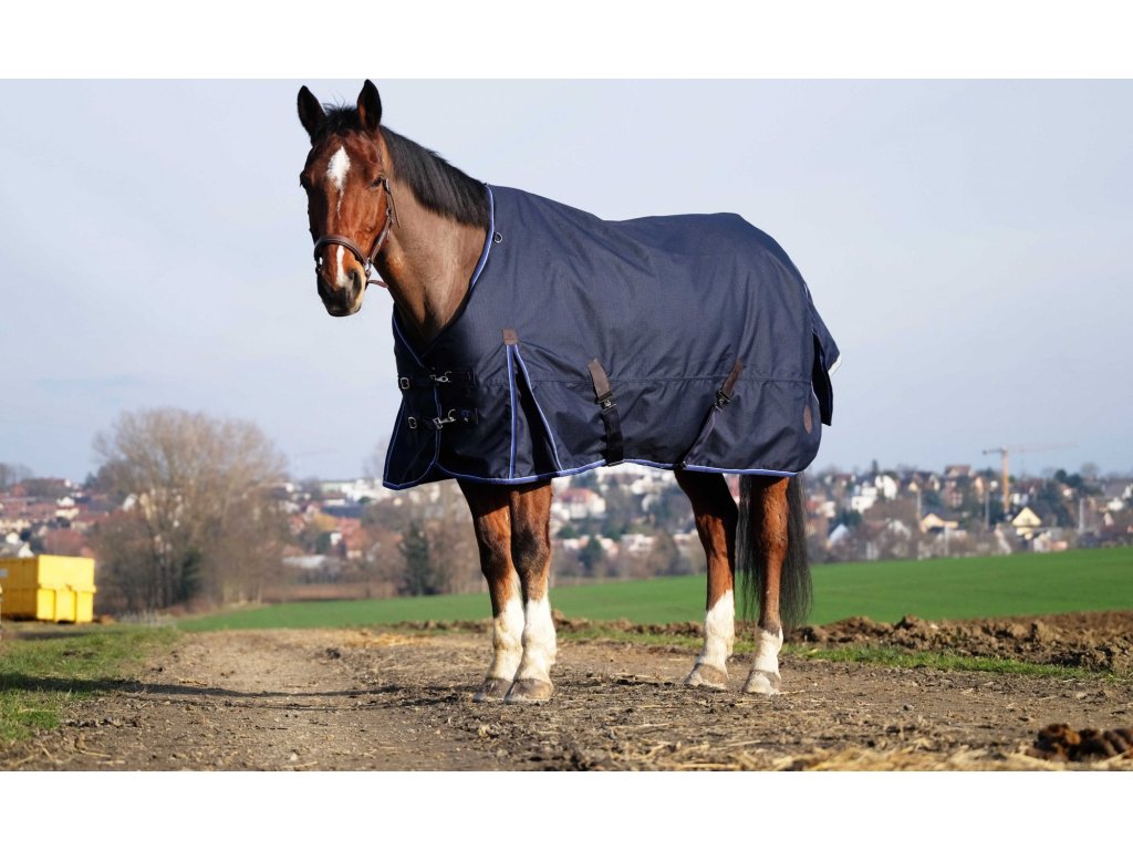 Táto nepremokavá výbehová deka so zateplením 100 g je vyrobená z pevnej 1200 Denier tkaniny, ktorá je odolná proti roztrhnutiu a vybavená nylonovou podšívkou, ktorá zaisťuje pohodlie a priedušnosť. Tri D-krúžky pri golieri umožňujú pripevnenie krčného dielu. V oblasti kohútika je mäkké polstrovanie zo syntetického barančeka. Veľká chvostová klopa je vybavená reflexnou páskou, čo zvyšuje bezpečnosť za šera alebo v noci. Upevňovacie krúžky na golieri a pri zadných nohách dovoľujú tiež pripevnenie lineru s výplňou 50 g alebo 200 g, či fleecovej deky pre ďalšie vrstvenie podľa potreby. V prednej oblasti má rozparok, ktorý koni umožňuje maximálnu voľnosť pohybu.