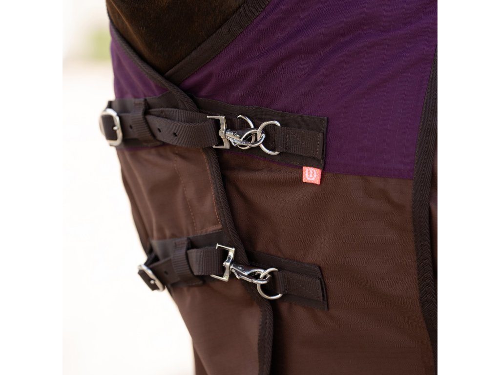 Výbehová deka s vyšším krkom a zateplením 300 g poskytuje spoľahlivú ochranu a vysoký komfort aj v nepriaznivých poveternostných podmienkach. Kombinuje funkčnosť, odolnosť a moderný vzhľad. Odolný vrchný materiál s pevnosťou 600 D je nepremokavý (vodný stĺpec 3000 mm) a účinne chráni koňa pred dažďom, vetrom aj vlhkosťou, zatiaľ čo hrejivá výplň zabezpečuje tepelný komfort pri celodennom nosení. Zvýšený krk s mäkkým fleecovým lemom minimalizuje tlak v oblasti kohútika, zvyšuje tepelný komfort a obmedzuje prenikanie chladu. Deka je vybavená dvojitým predným zapínaním na pracky, krížovým zapínaním pod bruchom a popruhmi medzi zadné nohy pre bezpečné a stabilné uchytenie.