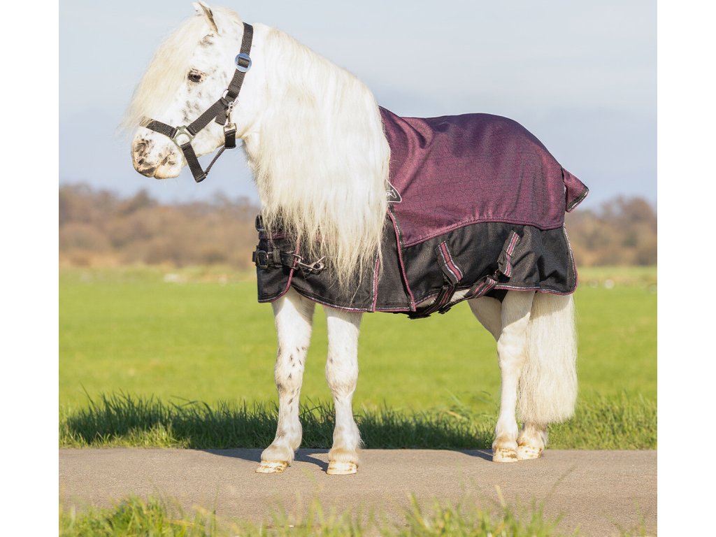 Veľmi kvalitná výbehová deka pre kone typu Falabella so zateplením 50 g. Je vyrobená z pevného, priedušného a nepremokavého materiálu s pevnosťou 1200 D a vodným stĺpcom 3000 mm/m², ktorý udržuje koňa v teple a suchu aj počas nepriaznivého počasia. Deka je vybavená dvojitým predným zapínaním, krížovým zapínaním pod bruchom s gumovými koncami, popruhmi medzi nohy a popruhom pod chvostom. Strih deky zahŕňa ramenné rozparky, mäkký fleece v oblasti kohútika a ochranu chvosta. V oblasti hrudníka je navyše nylonová vložka, ktorá zabraňuje odieraniu. Vďaka predĺženému strihu v oblasti hrudníka je deka vhodná aj pre širšie kone.