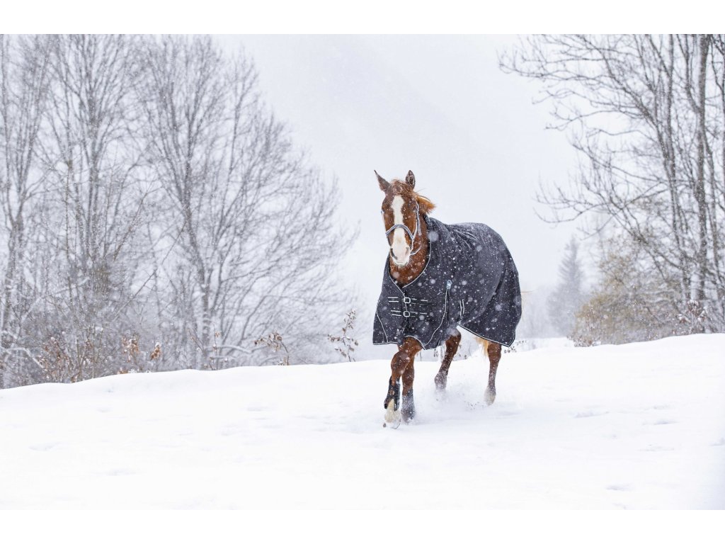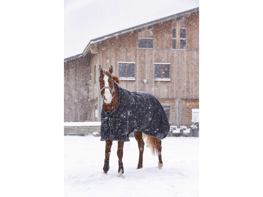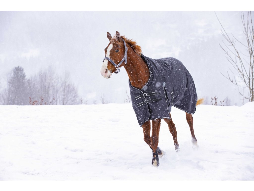 Táto výbehová deka je vyrobená z pevného polyesteru, ktorý zaisťuje spoľahlivú ochranu koňa pred chladom a vlhkosťou. Podšívka z polárneho fleecu poskytuje teplo a komfort, zatiaľ čo ramenné rozparky umožňujú voľnosť pohybu. Pre maximálne pohodlie je deka vybavená syntetickým barančekom na kohútiku, ktorý zabraňuje odieraniu. Má elastické krížové zapínanie pod bruchom pre bezpečné usadenie. Medzi ďalšie praktické prvky patria odnímateľné a nastaviteľné popruhy medzi nohami, popruh pod chvostom a ochrana chvosta. Na hrudi je deka vybavená nastaviteľným zapínaním s prackami. Všetky pracky sú kovové, čo zaručuje dlhú životnosť a pevnosť.