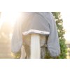 Výbehová nepremokavá deka Rhino HexStop Plus Pony so zateplením 100 g je určená pre poníky, ktoré neustále trhajú deky. Bola navrhnutá tak, aby ste mali istotu, že je váš kôň chránený aj v nepriaznivom počasí, nech už robí akúkoľvek neplechu. Vonkajší materiál s nepremokavou a priedušnou šesťuholníkovou ripstop väzbou je až o 30 % pevnejší ako u štandardných výbehových diek (1000 D). Podšívka je vyrobená z hladkého polyesteru, ktorý je šetrný k pokožke a chráni pred odieraním, podšívka je zároveň antistatická a antibakteriálna. Deka je vybavená predným zapínaním v tvare V, dvojitým krížovým zapínaním pod bruchom, popruhom pod chvostom a chráničom chvosta. Nechýbajú ani reflexné prvky pre väčšiu bezpečnosť za šera alebo nepriaznivého počasia. Je kompatibilná s liner systémom a súčasťou balenia je aj odnímateľný krčný diel.