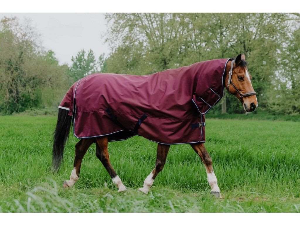 Táto nepremokavá výbehová deka so zateplením 350 g je vyrobená z extra pevného 1200 D polyesteru, ktorý je odolný proti roztrhnutiu. Vnútornú časť tvorí hladká nylonová podšívka zaisťujúca príjemné pohodlie a šetrnosť k srsti koňa. Deka je vybavená krčným dielom, ktorý sa zapína pomocou suchého zipsu. Zadnú časť chráni veľká vodoodolná klopa na chvost zdobená reflexným pásikom pre lepšiu viditeľnosť. Stabilné usadenie na tele koňa zaisťuje krížové zapínanie pod bruchom spolu s popruhmi medzi zadné nohy.