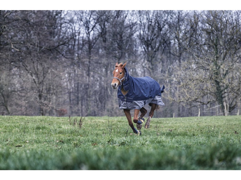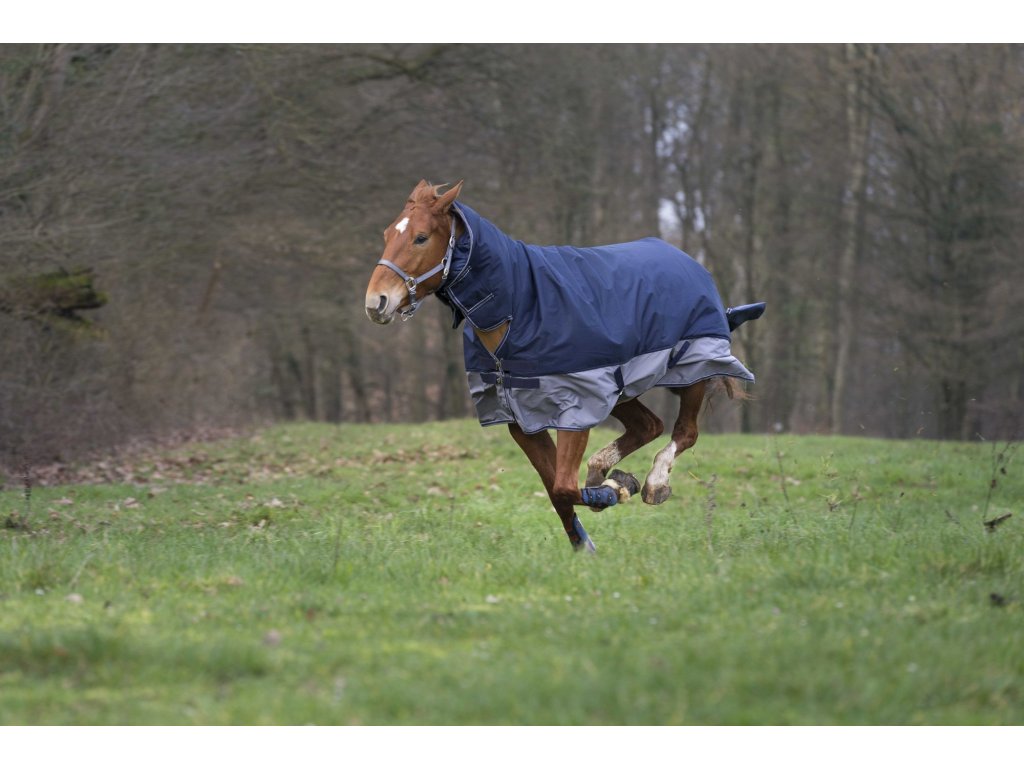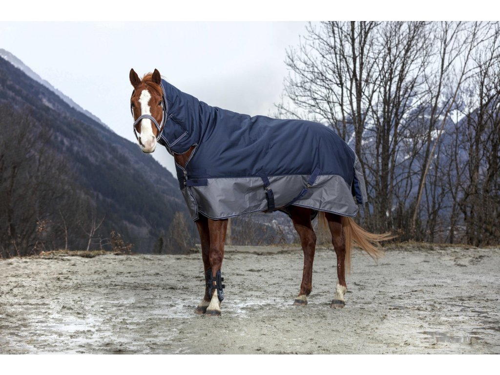 Táto nepremokavá výbehová deka so zateplením 200 g je vyrobená z odolného 600 D polyesteru s podlepenými švami, ktoré zaisťujú maximálnu ochranu proti dažďu a vetru. Vnútorná časť je vyrobená z príjemnej nylonovej podšívky. Deka je doplnená veľkou vodoodolnou chlopňou na chvost. O komfort v oblasti kohútika sa stará mäkké syntetické polstrovanie z barančeka, zatiaľ čo brušné krížové popruhy a nastaviteľný popruh pod chvost prispievajú k dokonalému usadeniu deky na tele. Má dvojité predné zapínanie. Krčný diel nie je možné odňať a zapína sa pomocou suchého zipsu.