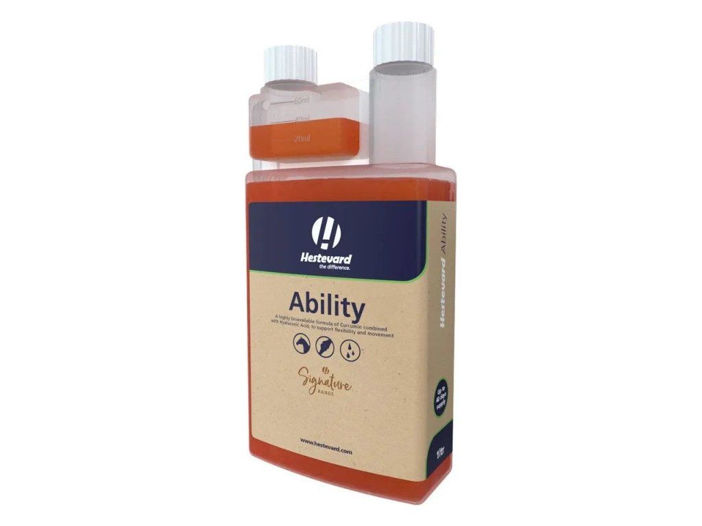Hestevard Ability je doplnok krmiva pre kone, ktorý obsahuje vysoko biologicky dostupný enkapsulovaný kurkumín v kombinácii s kyselinou hyalurónovou.Tekutý doplnok krmiva na podporu prirodzených protizápalových procesov koní a na zabezpečenie zdravých kĺbov bez bolesti.Kombinuje vysoko účinný mikrokapsulovaný kurkumín a kyselinu hyalurónovú. Vhodné pre kone alebo poníky, ktoré vykazujú známky stuhnutosti alebo potrebujú podporu kĺbov.