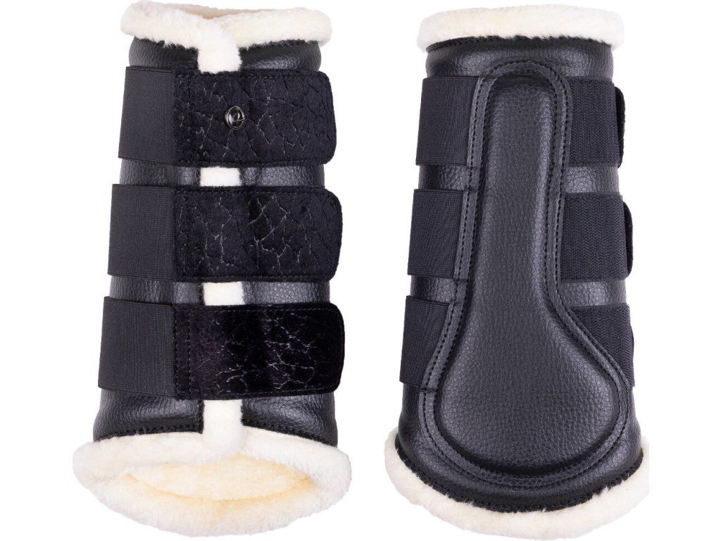 Veľmi kvalitné gamaše vhodné na predné aj zadné končatiny. Sú vybavené mäkkou podšívkou z umelého barančeka a zapínajú sa na tri pevné suché zipsy. Sú vyrobené z umelej kože a zdobené elegantnou krokodílou potlačou. Chrániče sú k dispozícii v dvoch farbách a dokonale ladia k ostatným produktom z kolekcie Julin. Súčasťou kolekcie jeseň/zima 2023/2024.