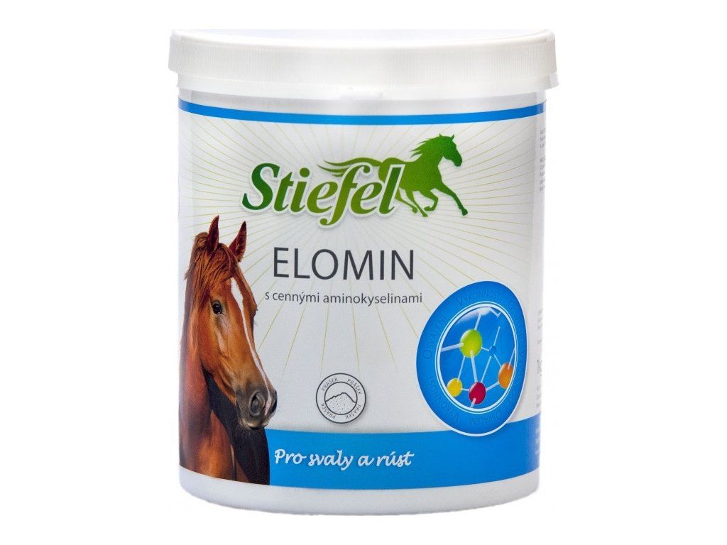 Stiefel Elomin pre svaly a rast. Elomin môže podporiť výkonnosť koní v tréningu. Obsiahnuté esenciálne aminokyseliny a minerálne látky môžu pomôcť vyrovnať nedostatky spôsobené výživou. Môžu podporiť správny vývoj kostných a svalových štruktúr u žriebät a mladých koní v období rastu. S lyzínom-HCL, DL-metionínom, soľou, chloridom horečnatým, L-treonínom, L-tryptofánom. Doplnkové krmivo pre kone.