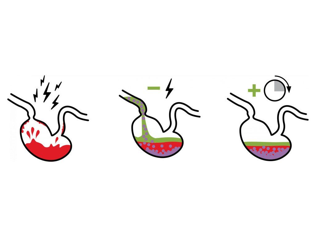 Stiahnutím žalúdka alebo pohybom koňa sa agresívna žalúdočná kyselina môže dostať k citlivým častiam žalúdočnej sliznice v hornej, žľazovej, mucínom chránenej časti žalúdka koňa. To vedie k podráždeniu a bolesti sliznice žalúdka.