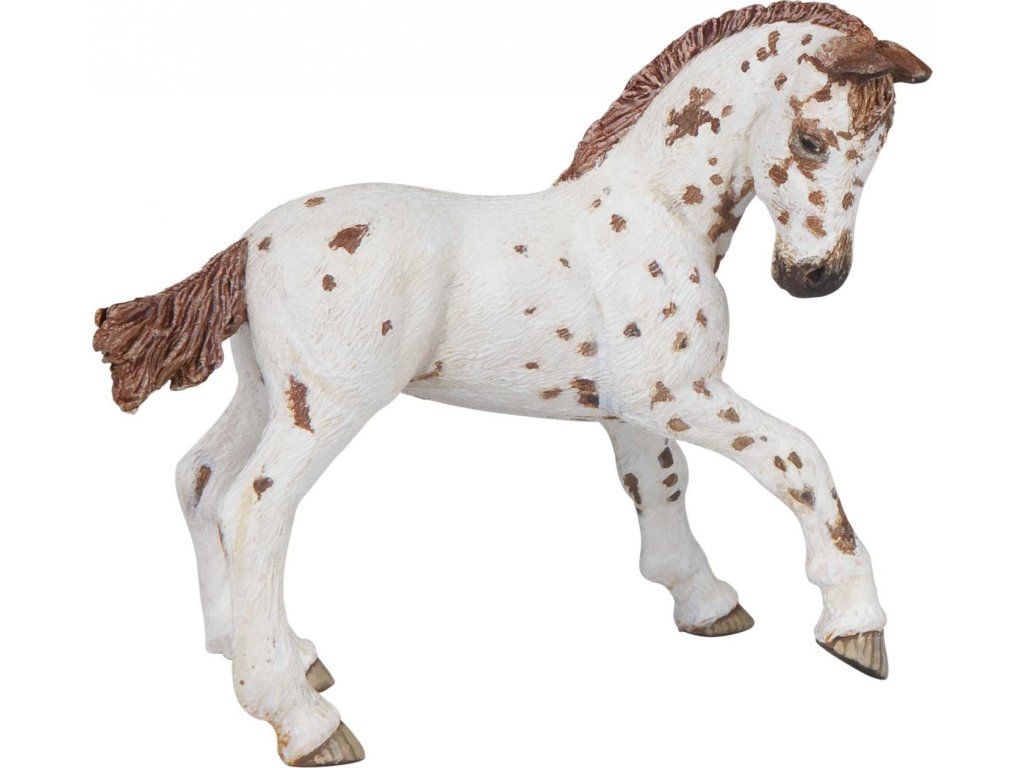 Táto detailne spracovaná figúrka žriebäťa appaloosa poteší malých milovníkov koní aj zberateľov. Všetky figúrky Papo sú navrhnuté a vyvinuté vo Francúzsku s cieľom spojiť učenie a hru pre deti. Rozmanité figúrky sú zdrojom zábavy a podnecujú detskú predstavivosť, ktorá je dôležitá pre ich rozvoj. Preto sa často používajú v metóde Montessori. Figúrky sú ručne maľované s najväčším dôrazom na detail. Vďaka vysokej kvalite spracovania a realistickému stvárneniu sú veľmi obľúbené aj u zberateľov. Nevhodné pre deti mladšie ako 3 roky.