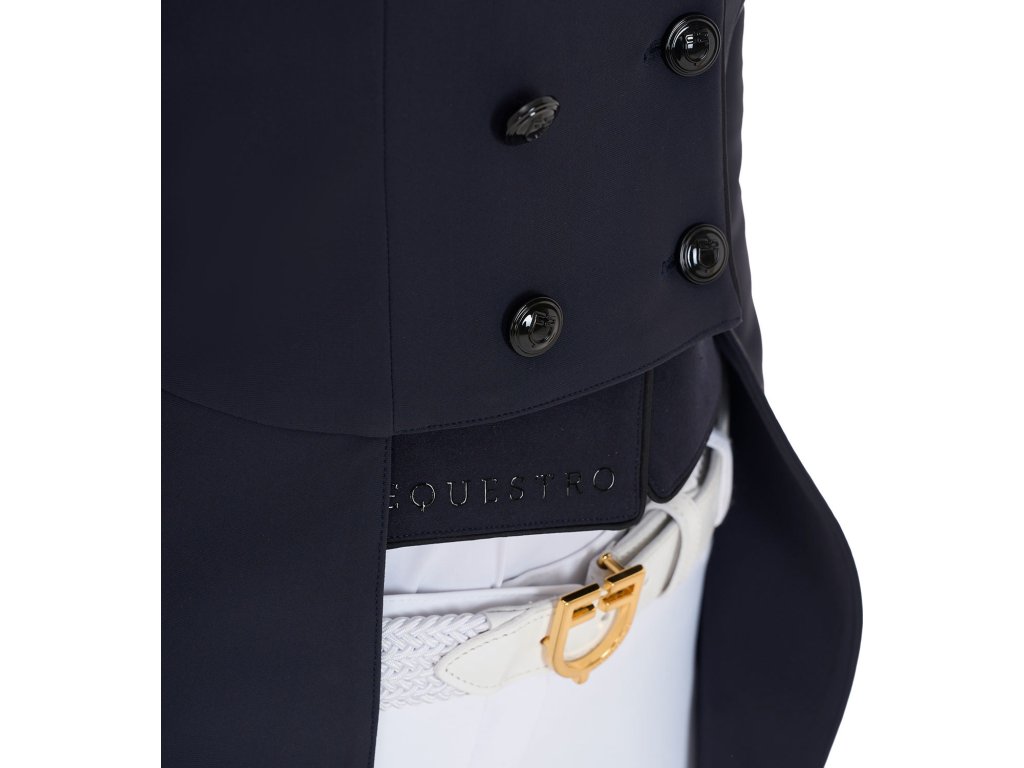 Vysokokvalitný frak na preteky vyrobený z priedušnej bi-elastickej technickej tkaniny. Frak je veľmi ľahký, pohodlný a skvele sedí vďaka slim fit strihu. Vybavený dvojradovým zapínaním na šesť gombíkov. Manžety sa zapínajú na tri gombíky. Šosy na fraku sú vybavené odnímateľnými závažiami pre zaistenie maximálnej stability. Zdobí ho nápis Equestro na chrbte a logo na ľavom ramene.