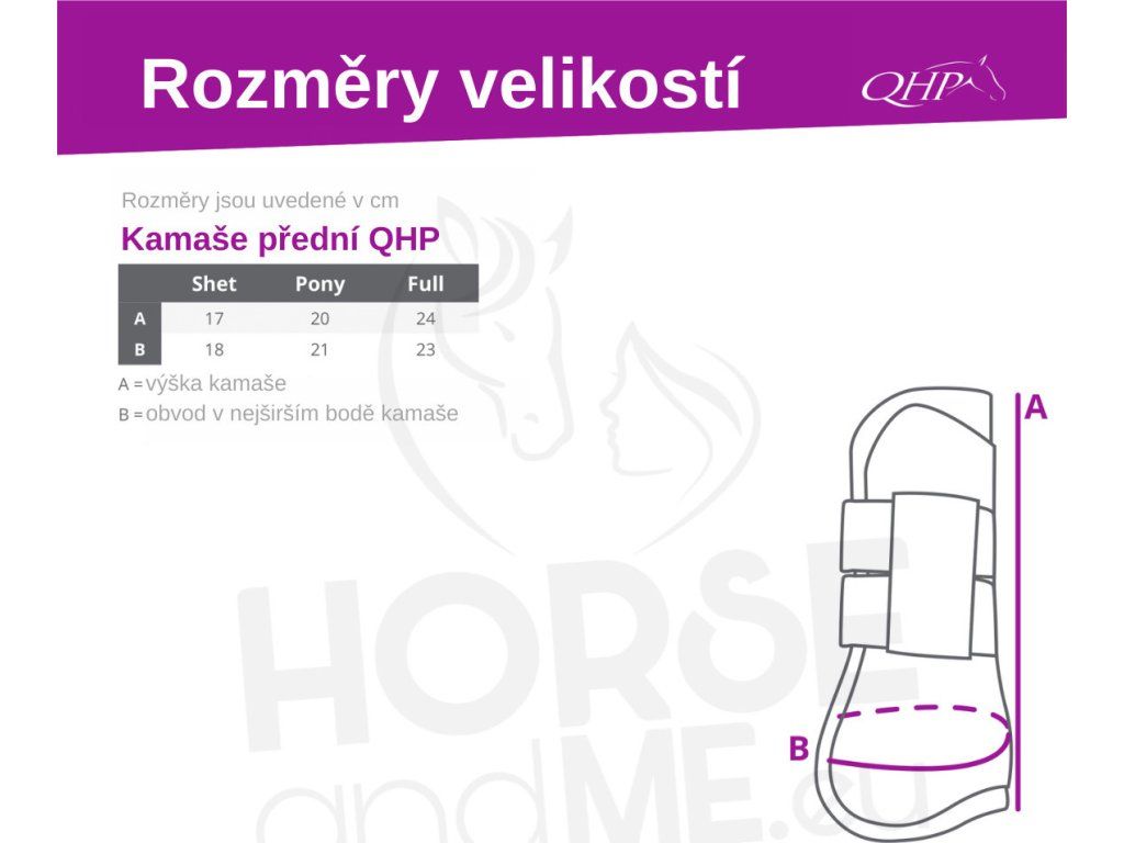 QHP je holandská značka výrobkov pre kone a jazdcov so zameraním na kvalitu, originálny dizajn a funkčnosť. QHP ponúka široký sortiment stálych produktov vo výrazných farbách a originálne pestrofarebné sezónne kolekcie. Vyniká najmä perfektnými vysokými jazdeckými čižmami v špičkovej kvalite za rozumnú cenu, veľkým výberom krásnych uzdečiek a najväčšou ponukou veľkostí kvalitných diek pre kone.