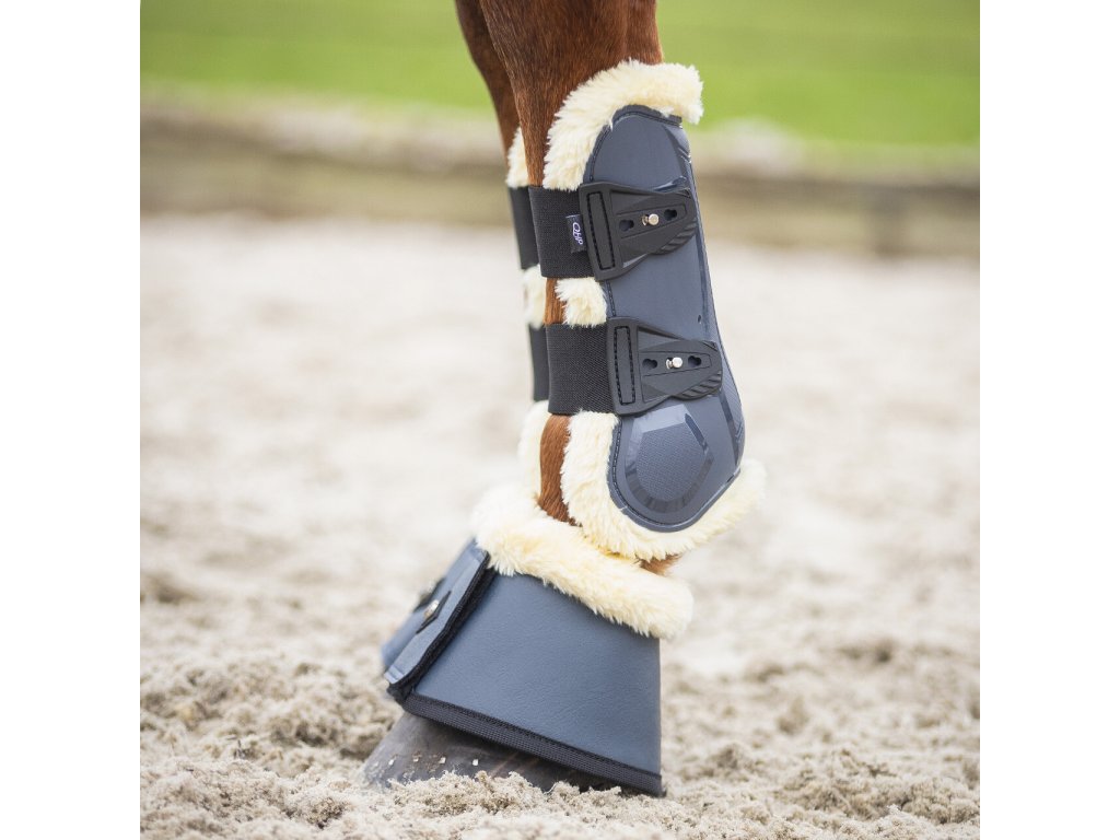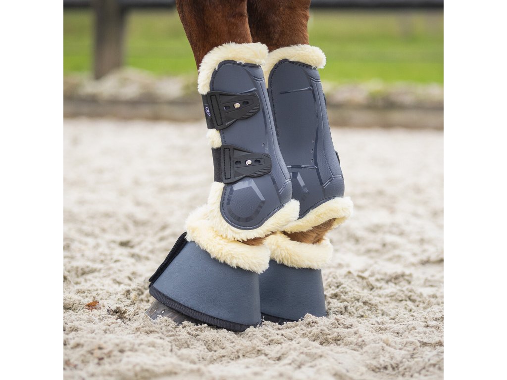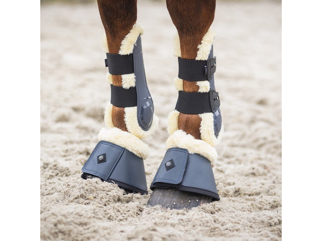 Pár anatomicky tvarovaných predných gamaší s bajonetovým elastickým zapínaním. Vnútornú časť tvorí mäkká neoprénová podšívka so syntetickým barančekom, ktorý zabraňuje odieraniu a je ideálny pre citlivé kone. Integrované ventilačné otvory podporujú cirkuláciu vzduchu a efektívne odvádzajú teplo aj vlhkosť. Uvedená cena je za pár.