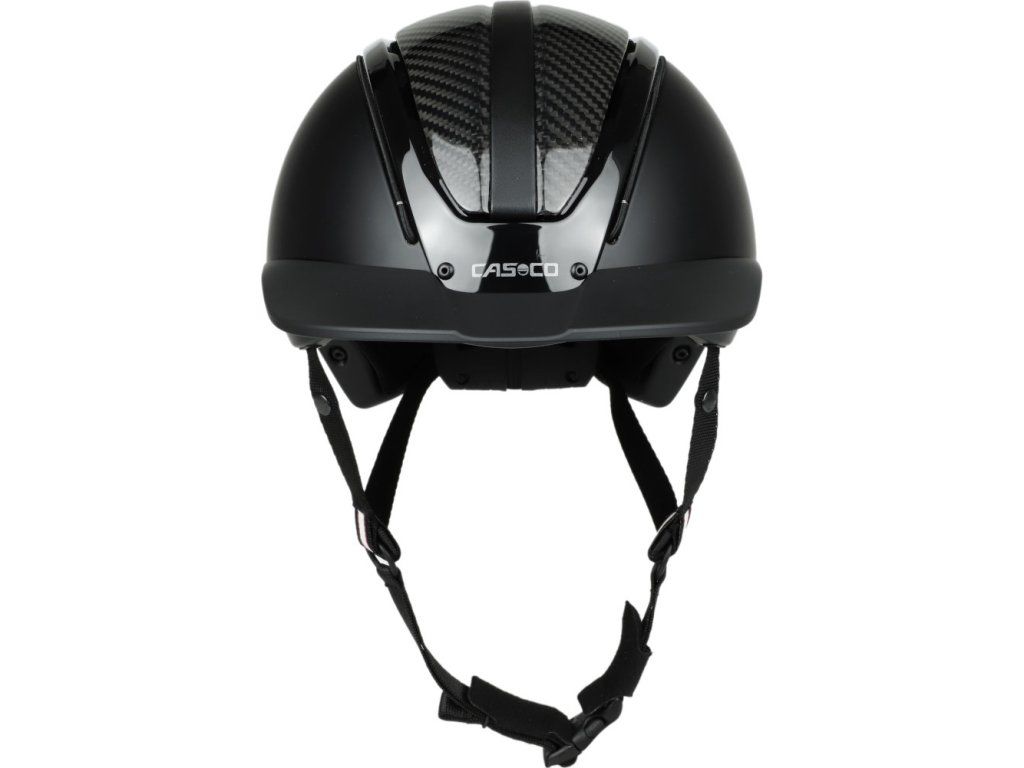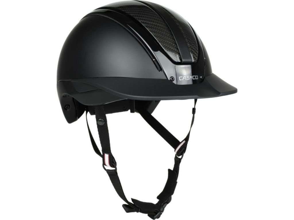 Nová ľahká ochranná prilba Casco Duell One CARBON je stelesnením minimalistickej sofistikovanosti. Bezchybný čierny vzhľad v kombinácii s elegantnými karbónovými prvkami nanovo definuje nadčasovú eleganciu. Nastaviteľné zapínanie pod bradou s remienkom z vegánskej kože dodáva punc luxusu a podčiarkuje precízne remeselné spracovanie značky Casco. Vďaka inovatívnemu systému Disk-fit Vario na nastavenie veľkosti a dômyselnému vetraniu ponúka prilba nielen maximálne pohodlie, ale stanovuje aj nový štandard štýlu. Casco Duell One CARBON je ideálnou voľbou pre jazdcov, ktorí hľadajú niečo výnimočné. Vyhovuje normám EN 1384 a VG1.