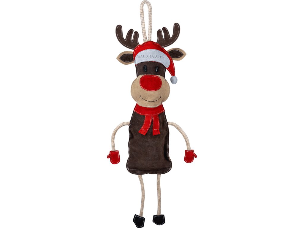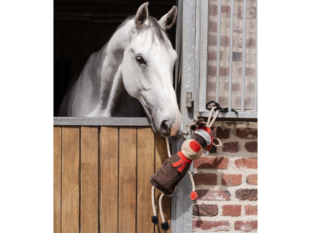 Doprajte svojmu koňovi zábavu a rozptýlenie s originálnou vianočnou hračkou. Po stlačení bruška vydáva praskajúci zvuk plastovej fľaše, ktorý kone prirodzene motivuje k ďalšej interakcii. Hračku je možné vďaka praktickej slučke ľahko zavesiť. Plastovú fľašu vnútri je možné kedykoľvek jednoducho vybrať a vymeniť vďaka zapínaniu na suchý zips. Rozmery: cca 45 cm telo + 20 cm nohy.