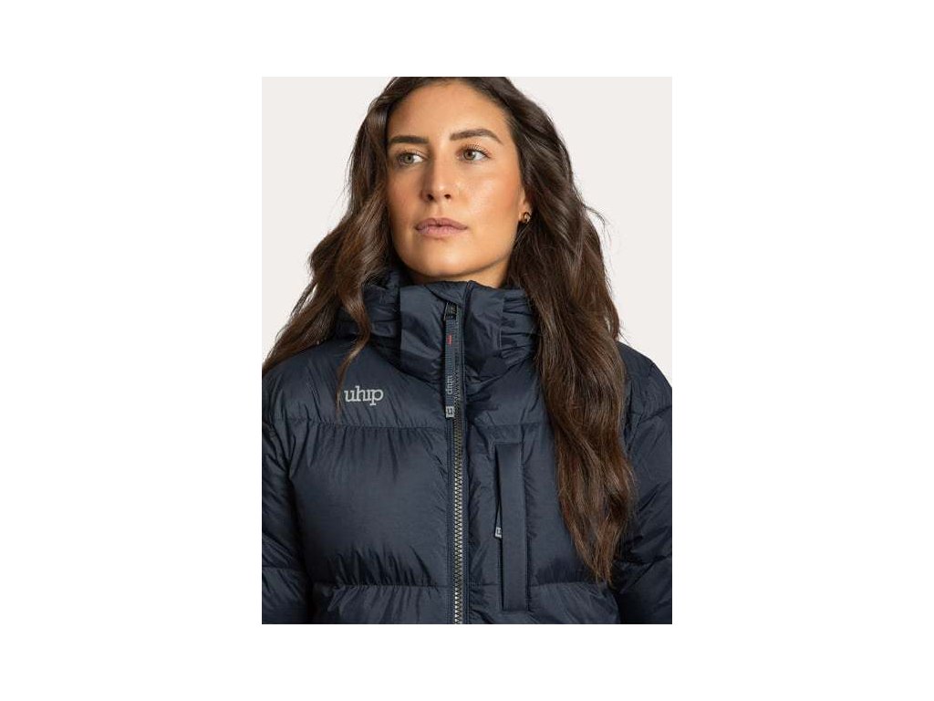 Kabát Arctic Puffer je vylepšenou a ľahšou verziou kabátu Igloo. Teraz je k dispozícii aj v predĺženej verzii. Kolekcia Arctic so športovým dizajnom a elegantným strihom spája maximálny tepelný komfort s úplnou voľnosťou pohybu. Je ideálny na jazdu na koni, prechádzky so psom, ako aj do mesta. Jedná sa o najteplejší jazdecký kabát v ponuke od výrobcu Uhip. Kabát je vyplnený kvalitnou izoláciou, ktorá vás udrží v teple aj počas tých najchladnejších zimných dní. Vonkajšia membrána TPU poskytuje vodotesnú ochranu (8000 mm vodného stĺpca) a vynikajúcu priedušnosť. Membrána TPU v kombinácii s odolnou vonkajšou tkaninou z recyklovaného polyamidu poskytuje spoľahlivú ochranu pred snehom. Tento zimný kabát vás udrží v suchu a príjemnom teple počas celého dňa, či už ste v pohybe alebo stojíte na mieste. Arctic Puffer je špeciálne navrhnutý tak, aby spĺňal potreby jazdcov, a vďaka svojim jedinečným vlastnostiam je ideálny na jazdenie. Má predný dvojcestný zips a zadné rozparky s vetracími otvormi, ktoré vám umožnia pohodlne sedieť v sedle. Má tiež vnútorné stehenné popruhy, ktoré udržiavajú kabát na mieste počas pohybu, a predĺžené manžety rukávov, ktoré sa dajú podľa potreby vyhrnúť. Vnútorné manžety poskytujú ešte väčšiu ochranu pred vlhkosťou a chladom.
