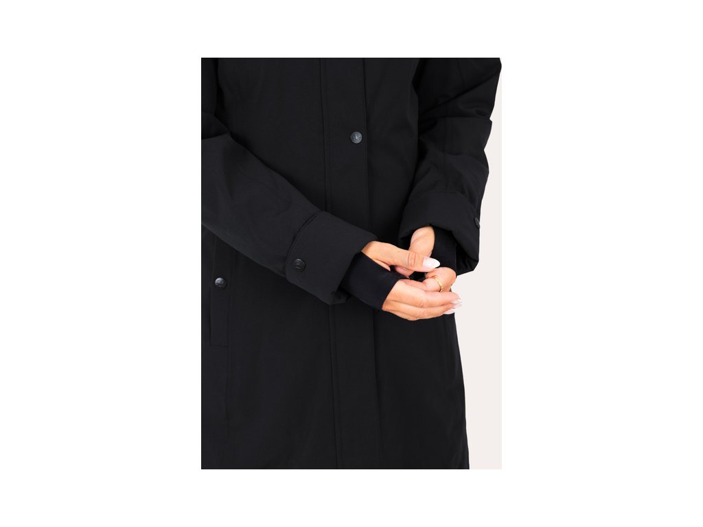 Nepremokavý jazdecký kabát Hailey od výrobcu Uhip vhodný do chladných dní. Hailey je navrhnutý vo veľmi elegantnom a klasickom dizajne, ktorý vydrží mnoho sezón. Vďaka nepremokavým vlastnostiam, ako je vodný stĺpec 8000 mm a podlepené švy, poskytuje kabát výbornú ochranu pred dažďom. Kabát je zároveň vetruodolný vďaka dvojcestnému prednému zipsu a vysokému útulnému golieru (priedušnosť 5000 g/m2/24h). Má praktické predné vrecká na uloženie drobností, predĺžené rukávy s otvormi na palec a odnímateľnú kapucňu, ktorá je kompatibilná s prilbou. Vysoký rozparok v zadnej aj prednej časti zaisťuje slobodu v pohybe pri jazdení. Na fixáciu kabátu na svojom mieste ho možno pomocou elastických popruhov pripnúť okolo stehien. Je možné ho kombinovať s vlnenými linermi Hybrid v prípade poklesu vonkajšej teploty.