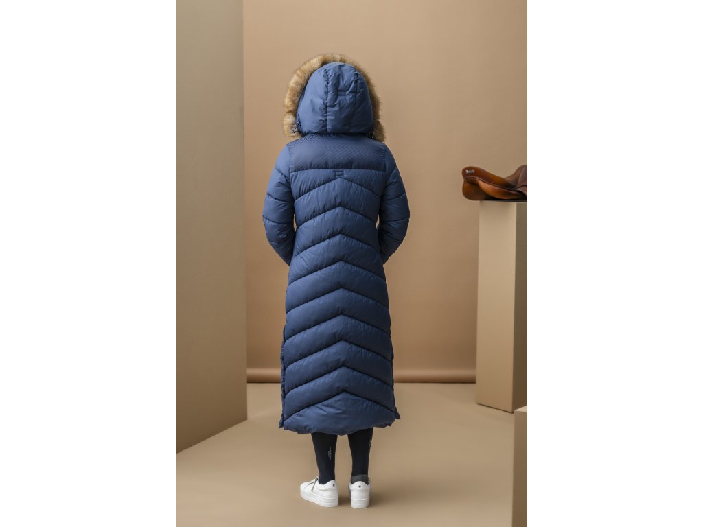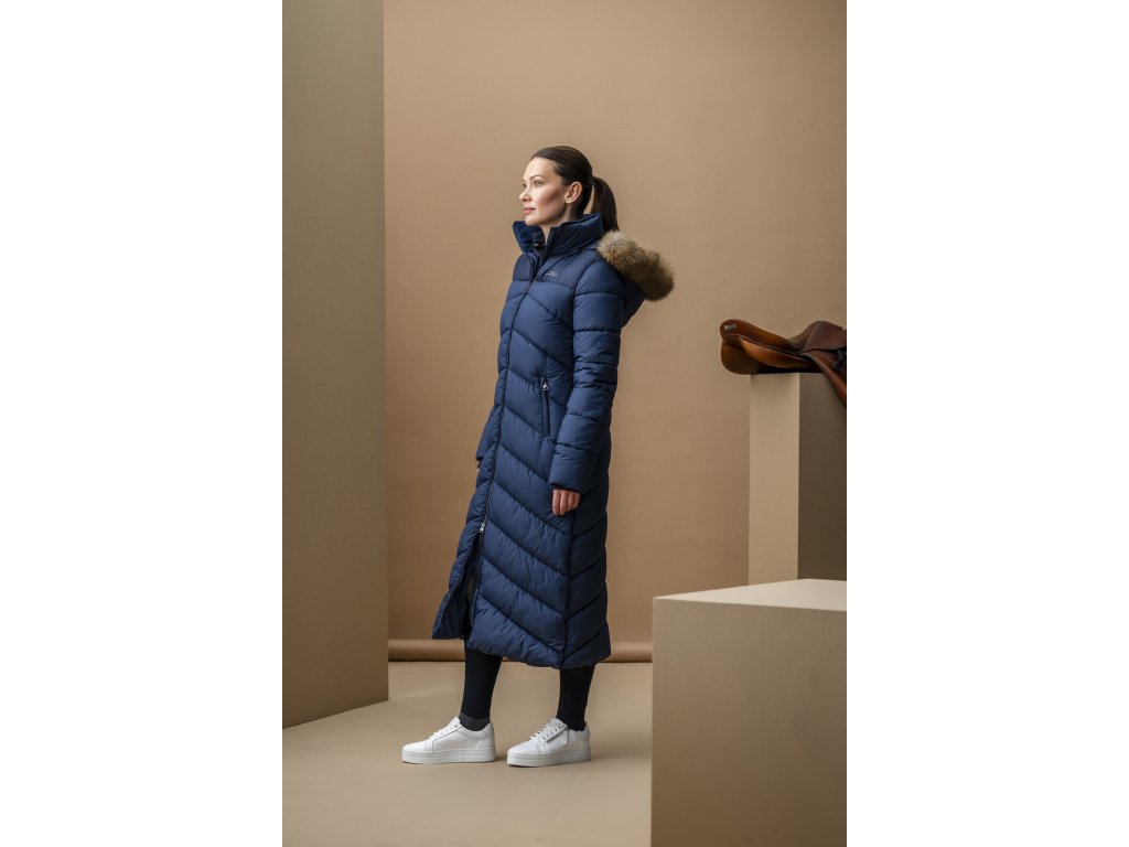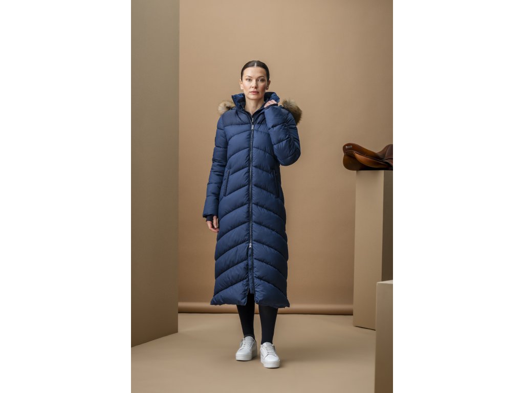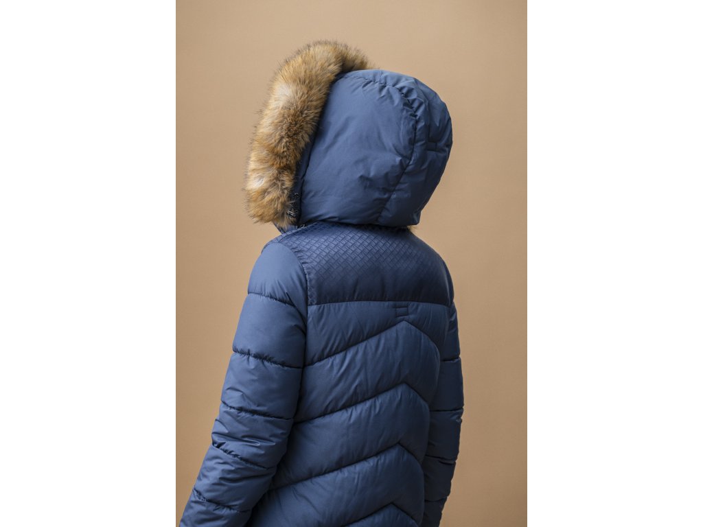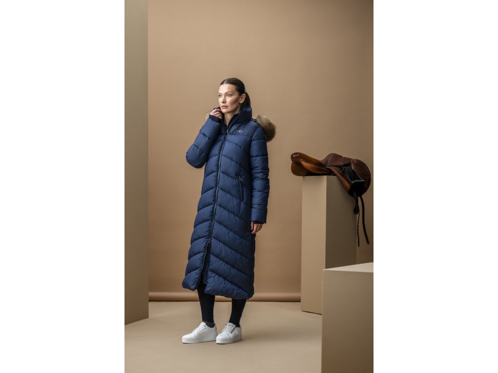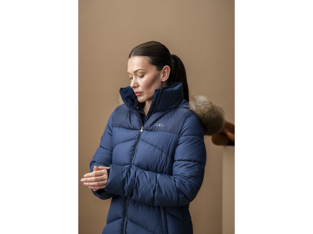 Dámský zimný jazdecký kabát Nivia je navrhnutý tak, aby spoľahlivo zahrial pri jazde aj práci v stajni. Pevný vonkajší ripstop materiál s povrchovou úpravou chráni pred vodou, vetrom, UV žiarením aj nečistotami a zabezpečuje dlhú životnosť a každodenný komfort. Výplň je z recyklovanej 3M™ Thinsulate™ Featherless izolácie, ktorá poskytuje vysokú hrejivosť bez zbytočného objemu. Kabát ponúka dve vonkajšie vrecká na zips, jedno vnútorné vrecko na zips a štýlové panely z nylonového materiálu s logom výrobcu, ktoré dodávajú elegantný vzhľad. Kapucňa aj kožušina sú odnímateľné. Zamatová podšívka goliera zaisťuje mimoriadne príjemný pocit pri nosení.