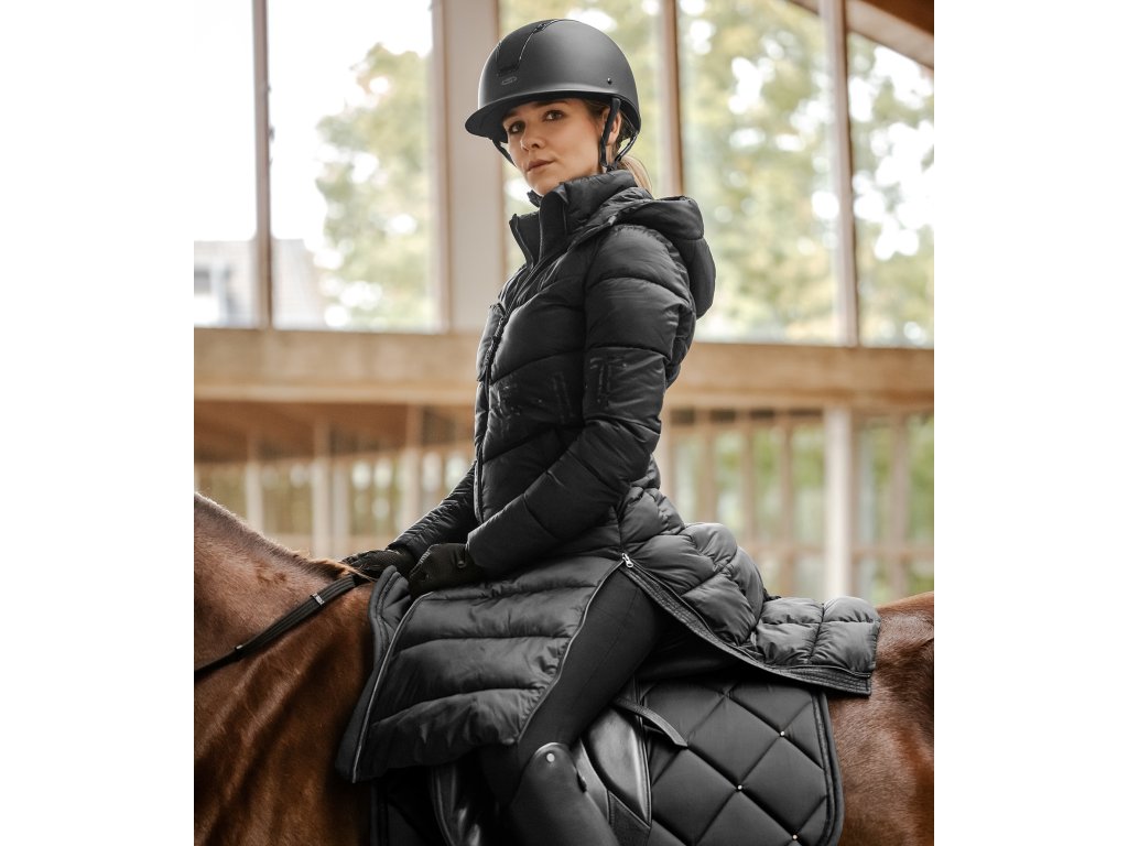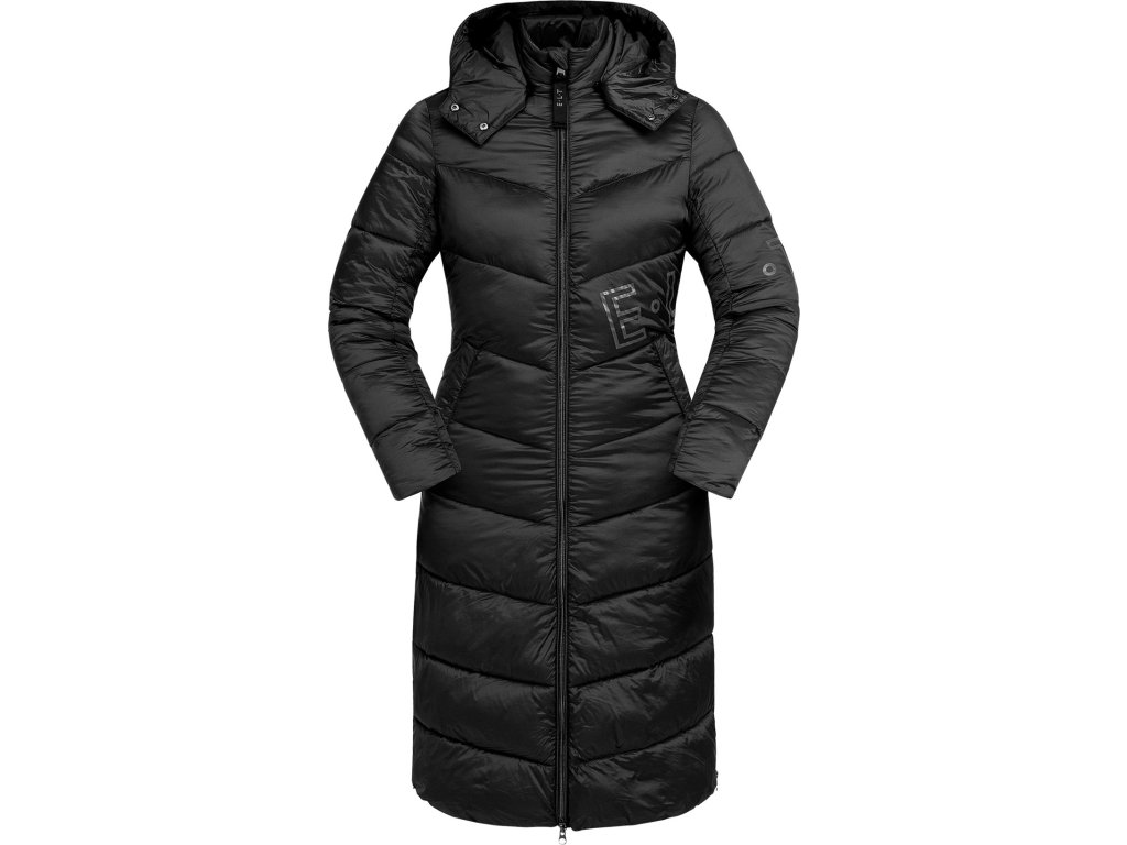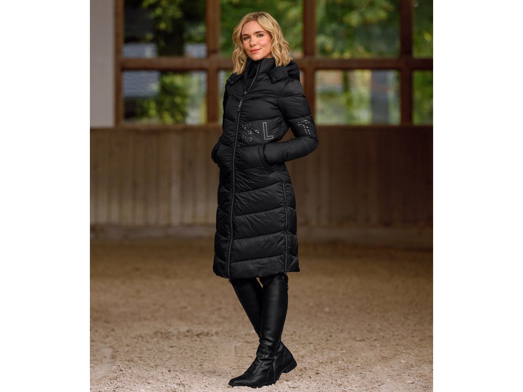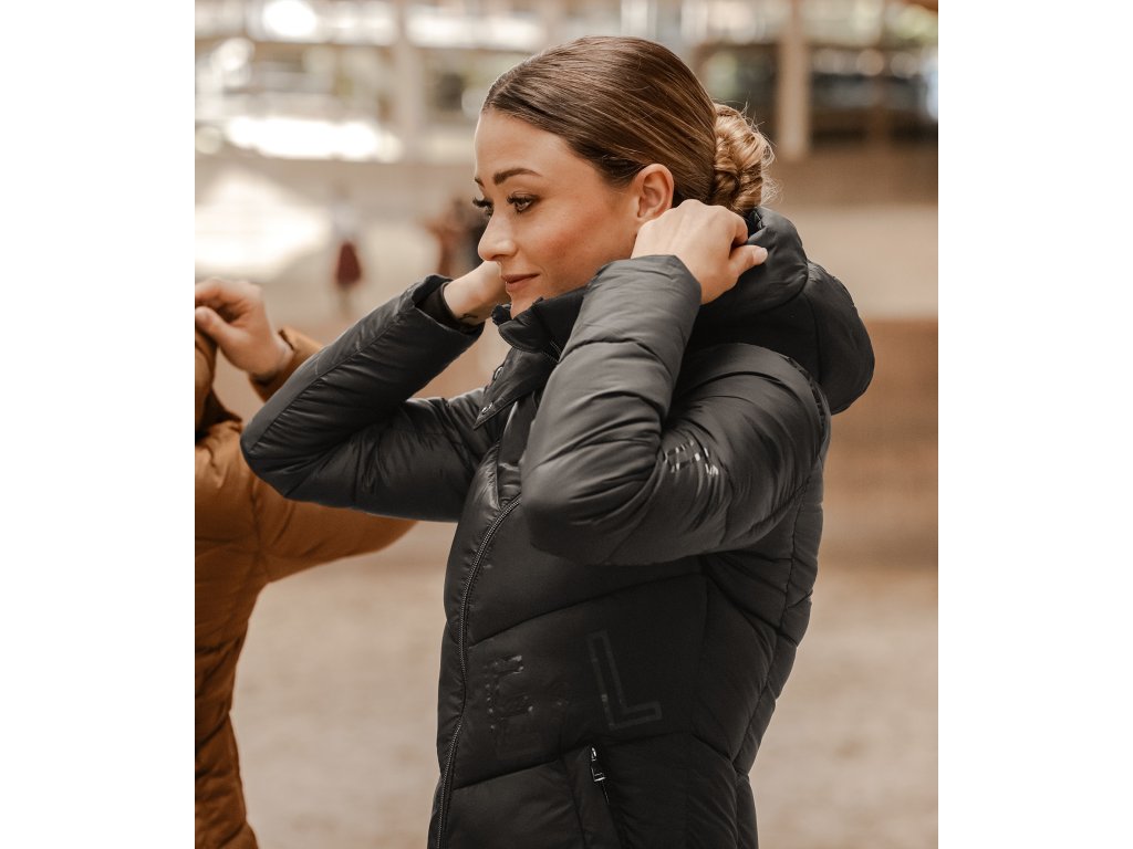 Dlhý prešívaný kabát v lesklom prevedení, ktorý si rozhodne zamilujete! Je výborou voľbou nielen do sedla, stajne, ale aj do mesta. Kabát je vybavený vnútornou hrejivou výplňou, ktorá pripomína perie, je navyše veľmi ľahký a neobmedzuje v pohybe. Vetruvzdorný materiál a vysokokvalitné vnútorné prešívanie s lemovanými švami zaručia, že zostanete v teple. Kabát je vybavený nastaviteľnou odnímateľnou kapucňou s možnosťou pripnutia na chrbte. Vysoké rozparky po stranách zaisťujú slobodu v pohybe a pri jazdení.Kabát je tiež vybavený vysokým golierom a vnútorným vreckom s ozdobnou pletenou páskou s logom ELT. Po stranách sú dve veľké praktické vrecká na zips. Zapínanie pomocou zipsu s kovovým bežcom, ktorý je vybavený stuhou a 3D logom. Všetky zipsy sú veľmi kvalitné. Kabát je zdobený logom ELT.