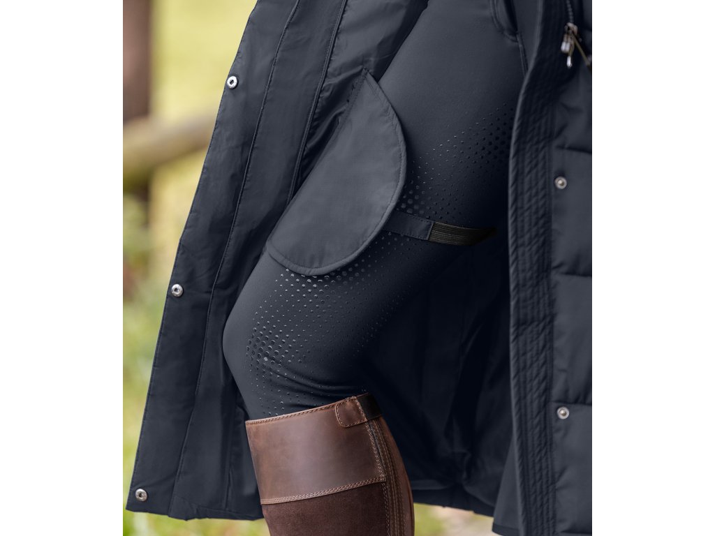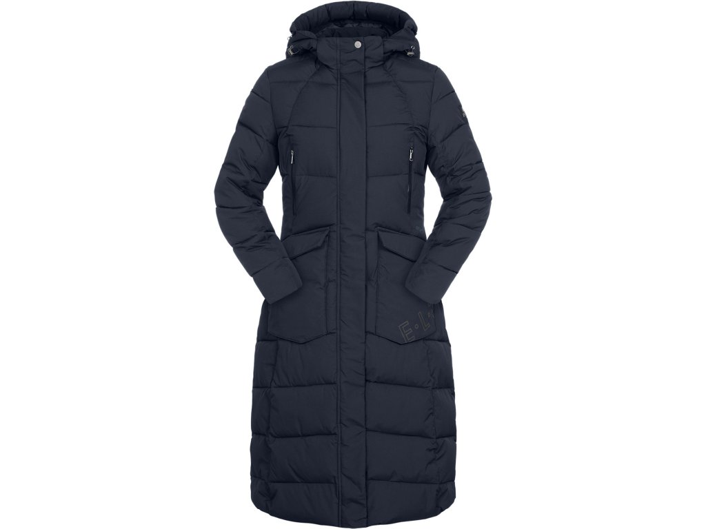 Najobľúbenejší zimný prešívaný jazdecký kabát Saphira prichádza v inovatívnom prevedení so syntetickou výplňou, ktorá napodobňuje páperovú výplň a celoplošným polstrovaním pre maximálne teplo a pohodlie. Je vybavený odnímateľnou kapucňou s nastaviteľným, skladacím šiltom s vodotesným zipsom a reflexným nápisom E-L-T. Kapucňa je vzadu navyše zaistená cvokom. Praktické detaily zahŕňajú kvalitný dvojcestný zips kovového vzhľadu s ochranou brady, predné zapínanie so skrytými patentkami, dve veľké vrecká s fleecovou podšívkou a chlopňou na patentky, náprsné vrecká s vodoodolnými zipsami a vnútorné vrecko na zips. Manžety majú rebrované vnútorné lemy, golier aj rukávy sú zakončené príjemným pleteným lemom. Nechýbajú ani vnútorné pútka na nohy s nastaviteľným zapínaním a rozparky s reflexnými prvkami, ideálne pre pohodlné jazdenie. Vzhľad kabáta dopĺňa nápis E-L-T na ľavom vrecku, silikónová potlač na rukáve a ozdobný rypsový odznak.
