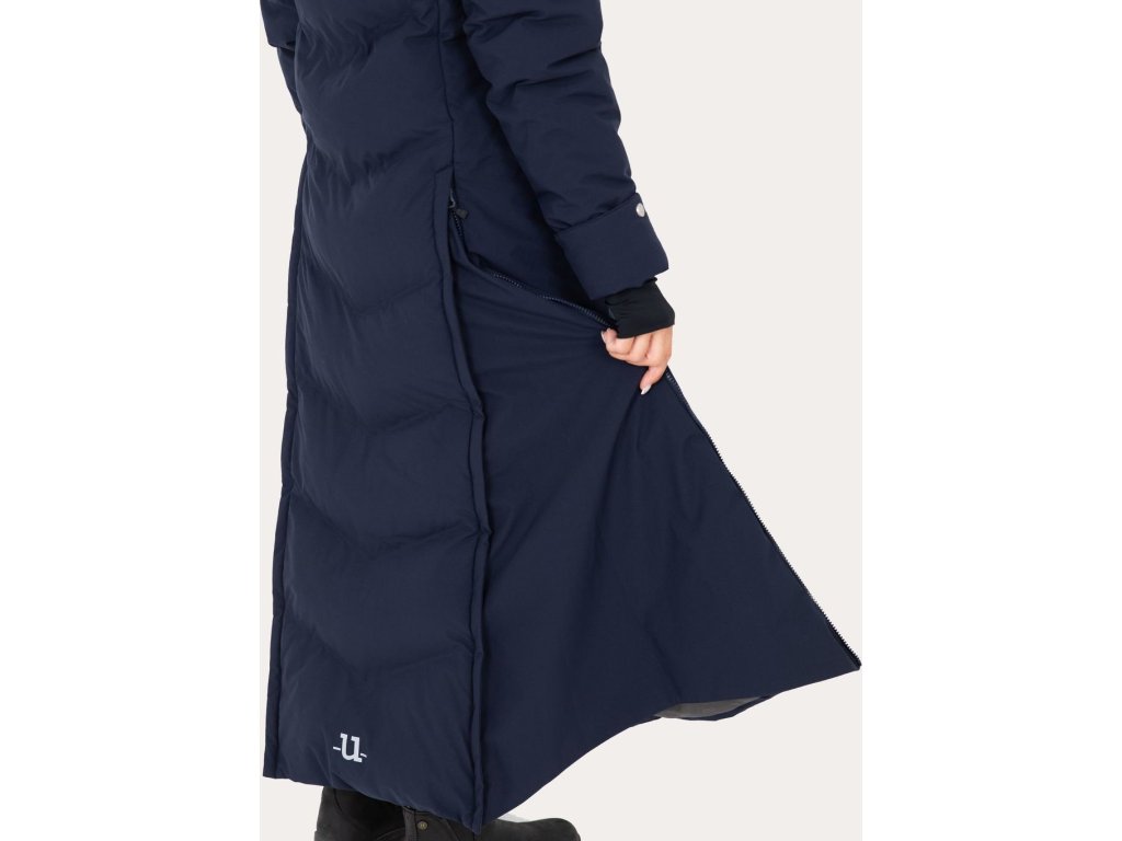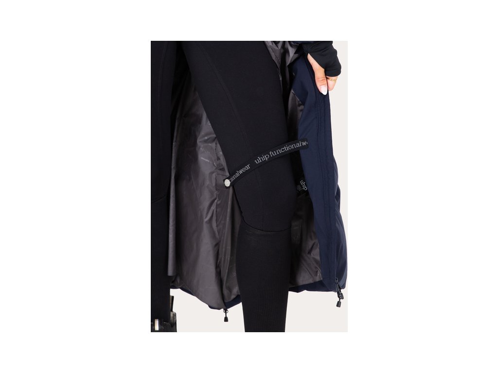 Zimný jazdecký kabát Frost je veľmi teplým a štýlovým kúskom, ktorý je vhodný nielen do stajne, ale aj do mesta alebo na iné zimné športy. Stane sa jedinečným kúskom vo vašom šatníku vďaka svojmu predĺženému strihu. Rovnako ako ostatné kúsky od výrobcu Uhip, aj kabát Frost bol navrhnutý pre skutočné maximálne pohodlie. Vďaka množstvu funkcií je každý deň oveľa jednoduchší a príjemnejší. Aby bolo možné v kabáte jazdiť, sú v prednej a zadnej časti elegantne a strategicky umiestnené rozparky, ktoré sa dajú pomocou zipsov rozopnúť. Umiestnenie rozparkov zabraňuje nepríjemnému vyhrňovaniu a minimalizuje prívod studeného vzduchu pod kabát. Kabát má dve predné vrecká a náprsné vrecko, všetky na zips. Ďalej je vybavený útulným golierom a rukávmi, ktoré sa dajú vyhrnúť podľa potreby. Kapucňa je kompatibilná s prilbou, je nastaviteľná vpredu a dá sa odopnúť. Pre fixáciu kabáta na svojom mieste ho môžete pomocou elastických popruhov pripnúť okolo stehien.