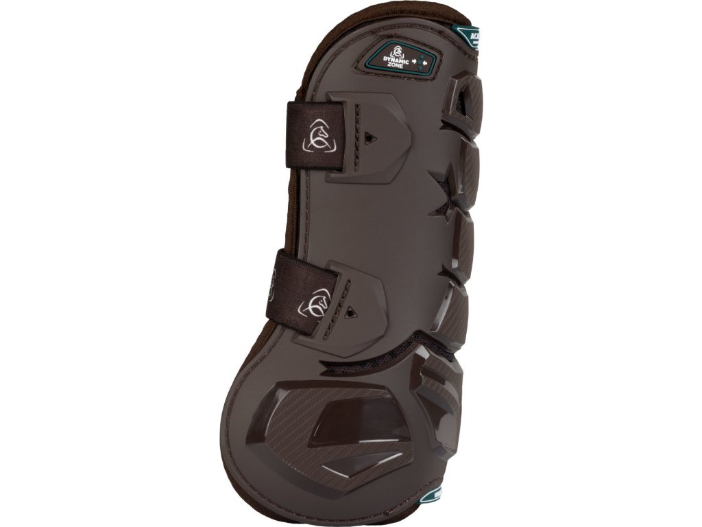 Vysokokvalitné gamaše na predné nohy sú vyrobené z polyuretánu s vysokou hustotou a technického neoprénu. Sú vybavené pokročilým systémom zapínania a účinným odvetrávaním. Štyri horizontálne ventilačné otvory optimalizujú prúdenie vzduchu a zvyšujú komfort pri nosení. Bajonetové zapínanie s elastickými popruhmi z technickej gumy zaisťuje výbornú stabilitu na nohe a zároveň umožňuje široký rozsah pohybu. Integrované ventilačné otvory podporujú správnu cirkuláciu vzduchu. Vnútorná časť je vybavená dvoma gélovými vložkami s vysokou hustotou, ktoré prispievajú k lepšej stabilizácii končatiny a účinnému tlmeniu nárazov. Ergonomicky tvarovaný plášť z nárazuvzdorného termoplastu zaisťuje vysokú pevnosť, spoľahlivú ochranu a dlhú životnosť aj pri intenzívnom používaní.