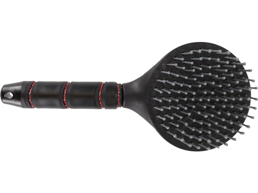 Odolný kartáč na hřívu a ocas je zdoben červenými kamínky, které mu dodávají elegantní vzhled. Hrubé plastové štětiny si snadno poradí se zacuchanou hřívou i ocasem a umožňují rychlou, efektivní a pohodlnou úpravu.