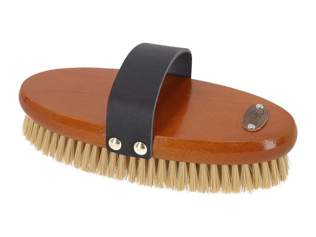 Jemná kefa na telo je ideálnou voľbou na každodennú starostlivosť o srsť koňa. Je vhodná na jemné odstraňovanie prachu a ľahkých nečistôt, a to vrátane citlivých partií, ako je hlava. Prírodné vlákna Tampico sú šetrné k pokožke, zároveň však účinne vyhladzujú srsť a dodávajú jej prirodzený lesk. Kefa je vybavená koženým remienkom, ktorý zaisťuje pohodlný a pevný úchop pri kefovaní. Kvalitné spracovanie z kombinácie dreva, nylonu a kože zaručuje dlhú životnosť.