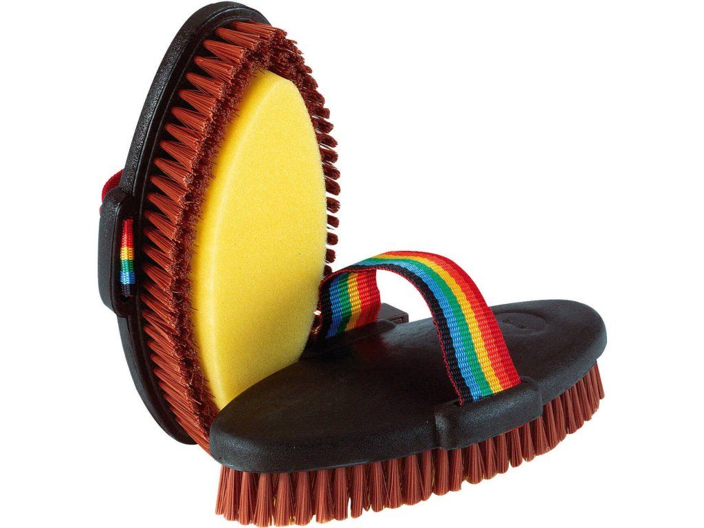 Kefa so syntetickou špongiou je ideálna na umývanie vášho koňa. Má čierny PVC chrbát a obsahuje mäkkú syntetickú špongiu s rozmermi 150 × 55 mm, ktorá je obklopená dvojitým radom štetiniek. Tie sú usadené v pevnom PVC krúžku s priemerom 25 mm, čo zaisťuje dôkladné čistenie aj jemnú masáž. Vďaka kombinácii špongie a štetín je kefa vhodná na mokré aj suché použitie a pohodlne sadne do ruky.