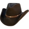 Westernový klobúk z vlnenej plsti zdobený koženým pásom a niekoľkými nitmi. Klobúk je veľmi odolný a ľahko sa tvaruje. Je vybavený nastaviteľným vnútorným pásom.