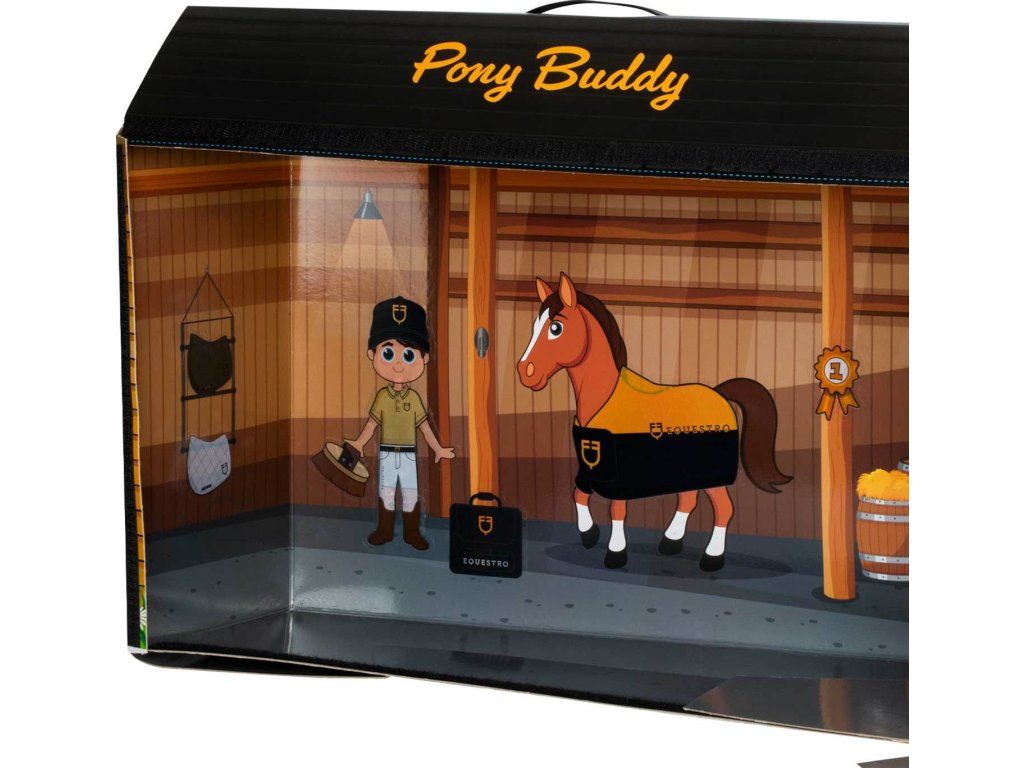 Plyšový koník Equestro je detailne spracovaná hračka z mäkkej plyšovej látky, ktorá poteší všetkých malých milovníkov koní. Má hrivu a chvost, ktoré sa dajú česať, zapletať a zdobiť, takže skvele podporuje kreativitu a jemnú motoriku. Vzhľad dopĺňa žltá mašľa na hrive a vyšité logo Equestro na nohe. Vďaka stabilnej konštrukcii poslúži nielen ako hračka, ale aj ako štýlová dekorácia do detskej izby s jazdeckou tematikou. Ideálny tip na darček, ktorý rozvíja fantáziu aj zručnosti. Môžu sa s ním hrať aj malé deti od 3 rokov. Koník je dodávaný so samolepkami a krabicou, ktorá sa po prevrátení naruby zmení na luxusný box. Možno k nemu dokúpiť vybavenie, napríklad deku, bandáže, ušaňu či podsedlovú dečku. Rozmery koníka: 50 x 40 cm.
