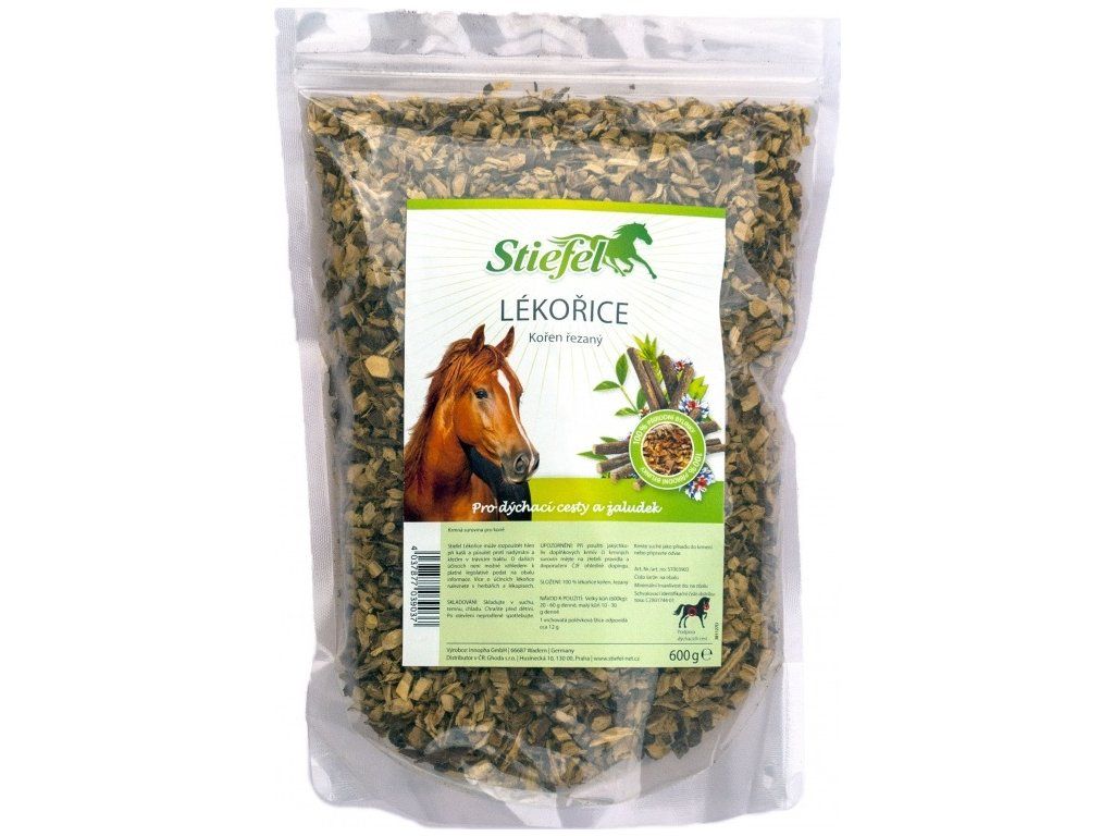 Stiefel Koreň sladkého drievka je známy už v starých liekopisoch pre svoj pozitívny účinok na dýchacie cesty a trávenie. Pochádza zo Stredomoria a západnej Ázie. Sladké látky zo sladkého drievka sa podieľajú na biochemickom cykle hospodárenia s vodou a soľou a môžu pôsobiť proti kŕčom v tráviacom trakte. Obsahuje prírodný glycyrrhizín, saponíny, flavonidy, glykozidy, kumarín. Doplnkové krmivo pre kone.