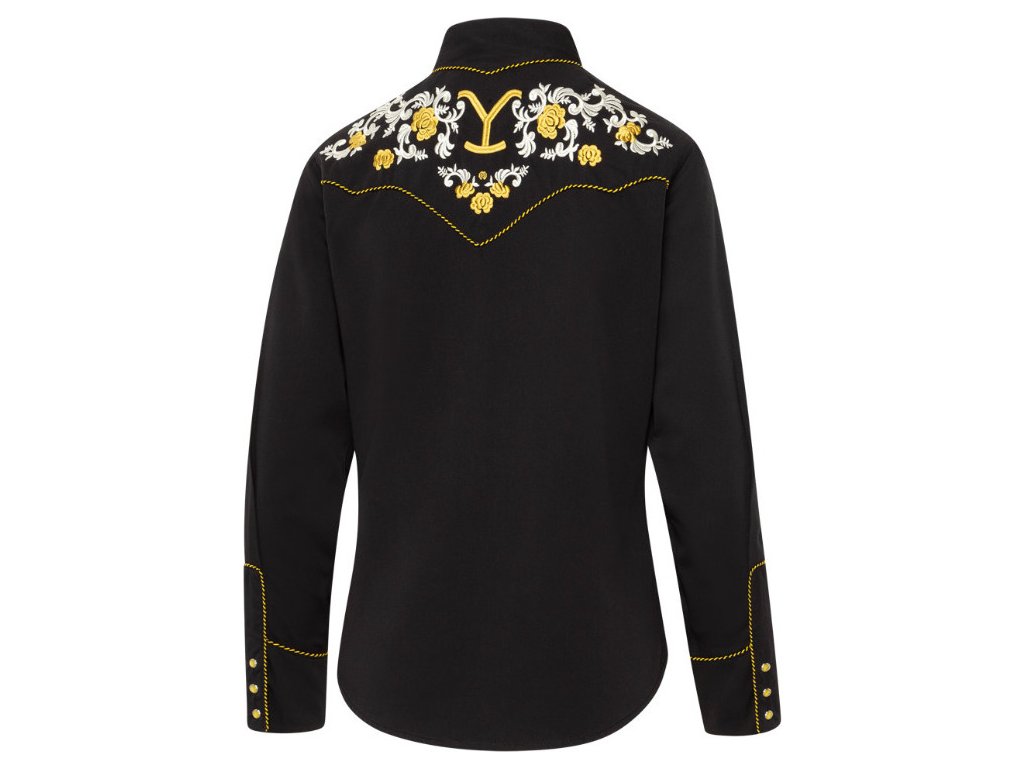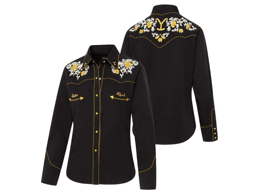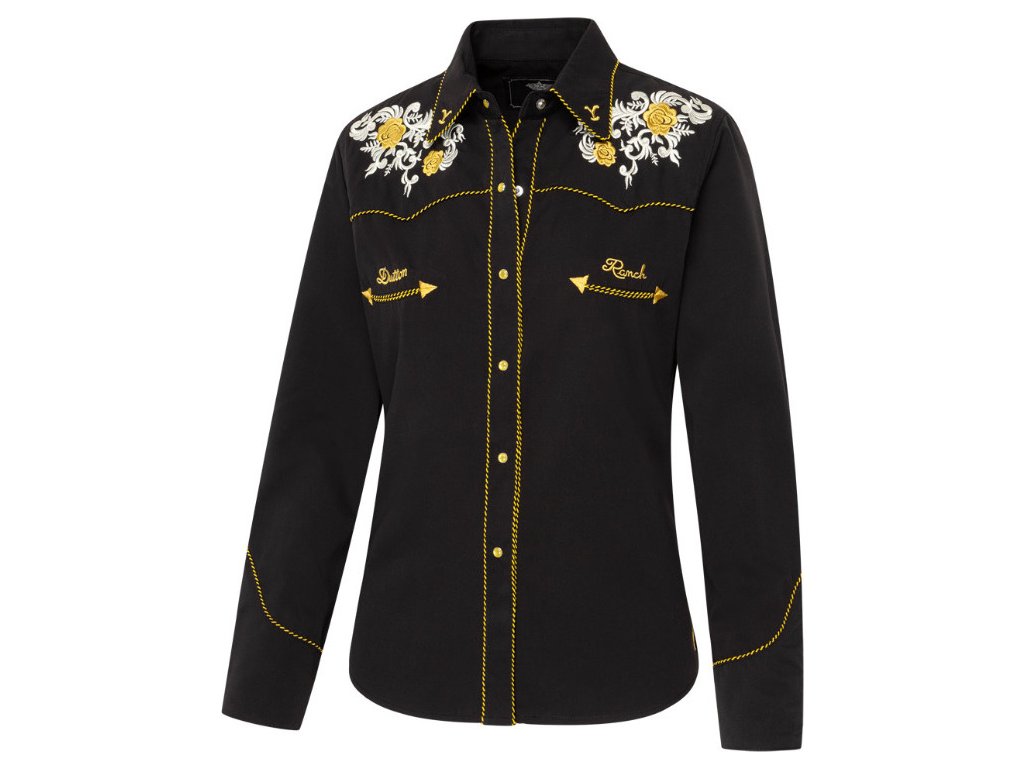Dámska westernová košeľa Yellowstone s dvojfarebnou výšivkou na hrudi a chrbte. Kontrastné lemovanie zvýrazňuje jej autentický westernový štýl. Má falošné vrecká a manžety s tromi gombíkmi. Vďaka ľahko udržiavateľnému materiálu a perfektnému strihu ponúka košeľa dokonalú kombináciu štýlu, pohodlia a elegancie.