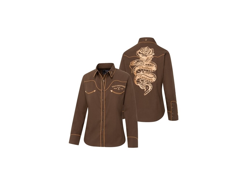 Košeľa westernová Yellowstone Dutton forever Stars & Stripes, dámska, hnedá