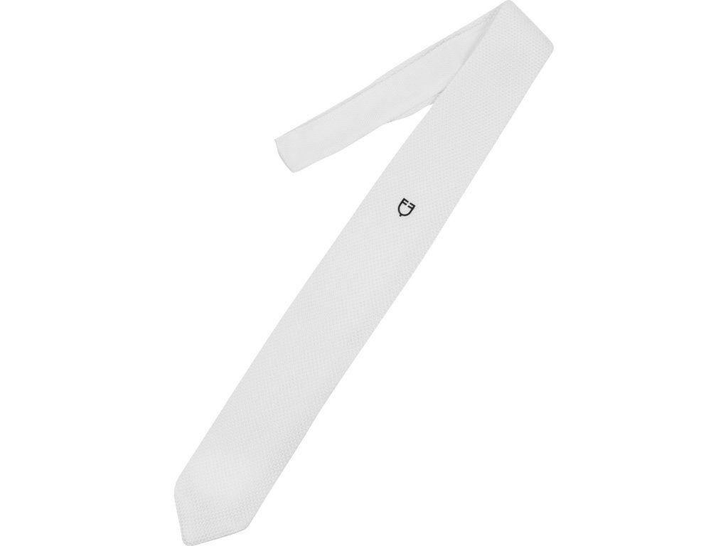 Pánska kravata vyrobená z vysokokvalitnej tkanej látky. Materiál je elastický. Perfektne sedí. Zdobená logom Equestro. V bielej farbe a jednej univerzálnej veľkosti.