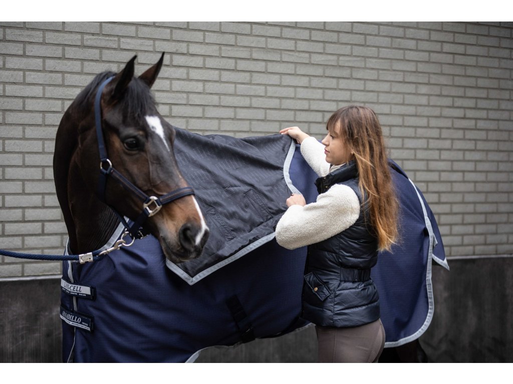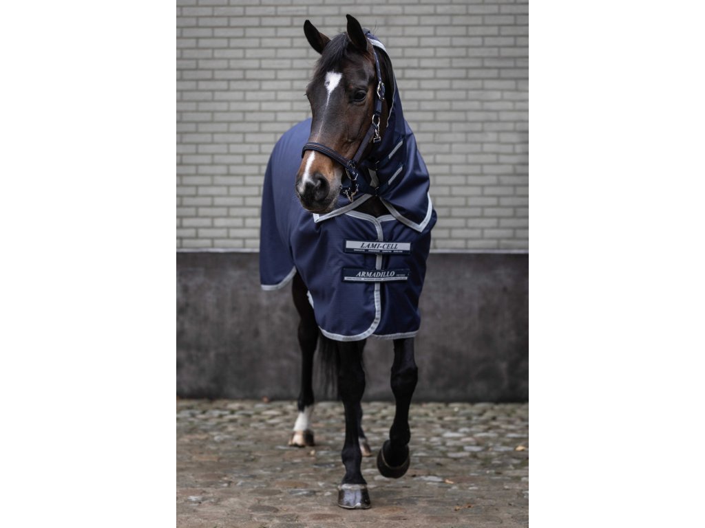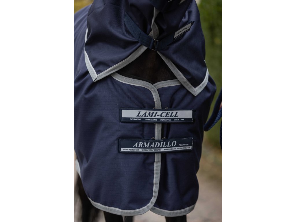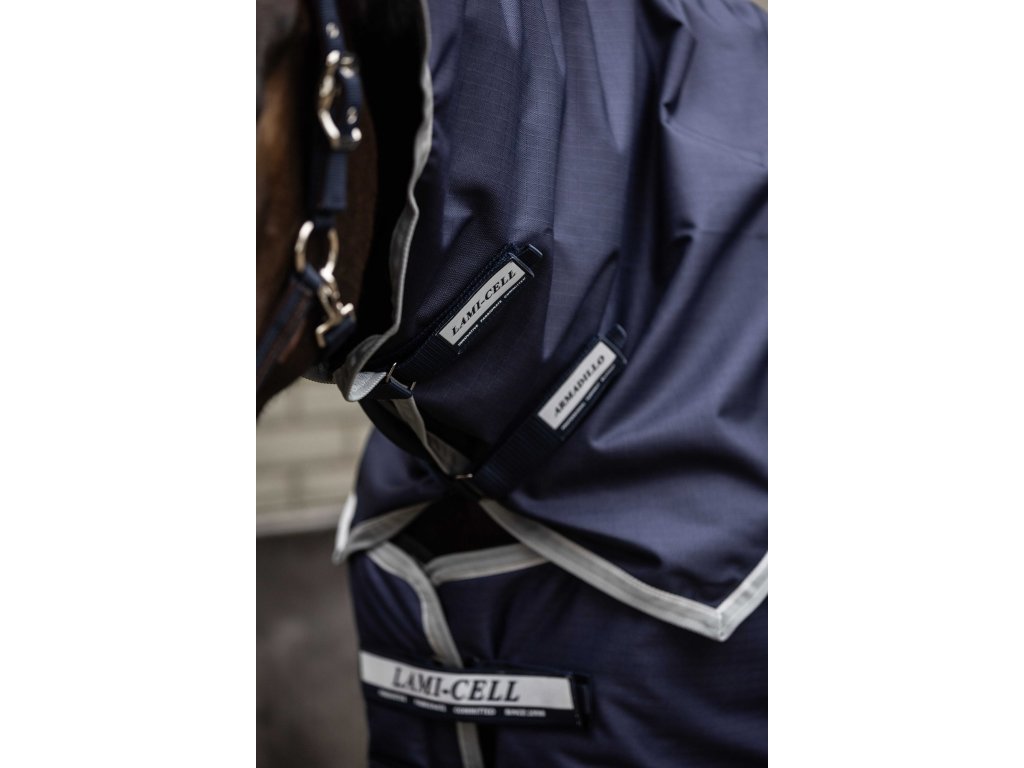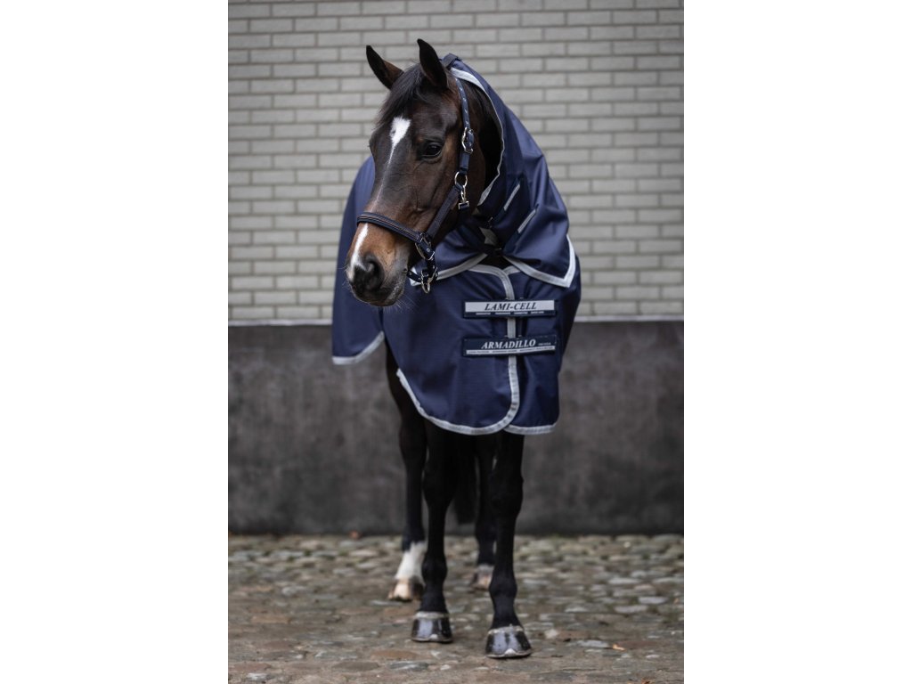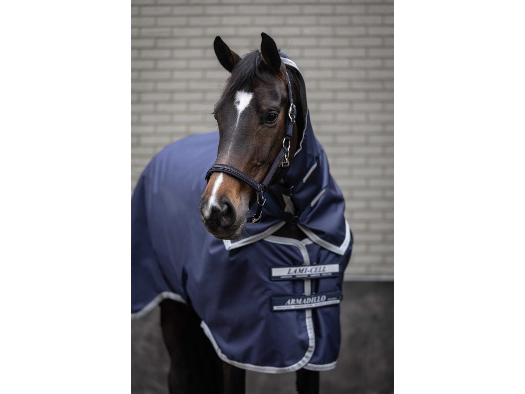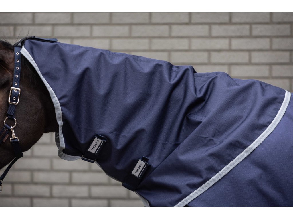 Tento krčný diel k nepremokavej deke Armadillo poskytuje vysokú odolnosť. Vďaka elastickým pásikom ho možno ľahko pripevniť k deke a vďaka zapínaniu na suché zipsy dokonale sedí, pričom zabezpečuje pohodlie koňa za každého počasia. Je vyrobený z polyesteru s pevnosťou 1200 D, ktorý zabezpečuje dlhú životnosť. Krčný diel je vodoodolný a priedušný (3000/3000) a má hladkú antistatickú podšívku na ochranu srsti. Reflexné pruhy zvyšujú viditeľnosť a bezpečnosť pri pohybe vonku. Vďaka elastickým pásikom na suchý zips sa ľahko a rýchlo pripevňuje k deke. Krčný diel možno pripevniť k ohlávke.