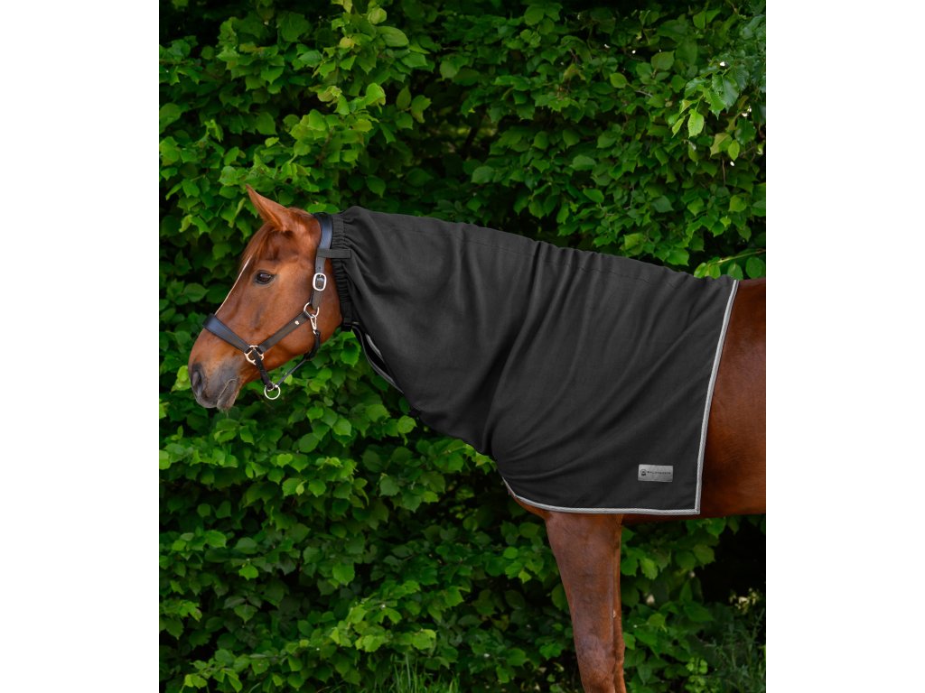 Fleecový krčný diel k odpocovacím dekám Economic Waldhausen. Vďaka trom suchým zipsom sa ľahko pripevní k ohlávke, elastická vložka v oblasti krku umožňuje presné nastavenie podľa potrieb koňa.