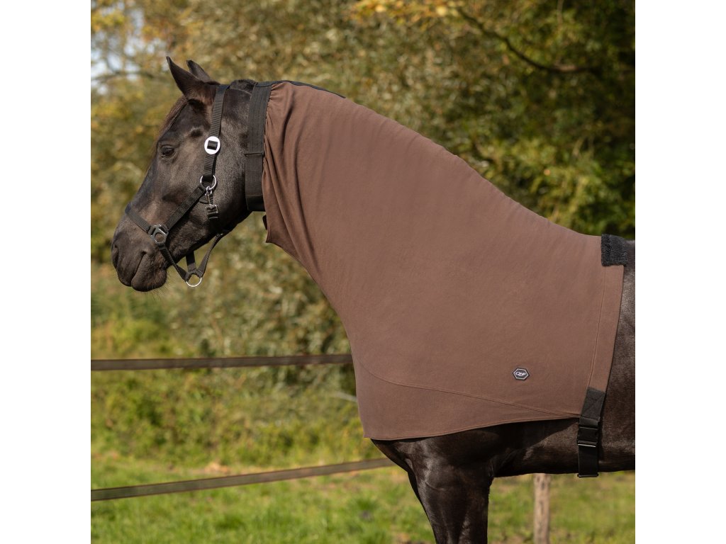 Elastický krčný diel Ekzém Big má špeciálne upravený strih určený pre širšie, frízske a barokové kone.Pomáha obmedziť prístup hmyzu, znižuje riziko vzniku letnej vyrážky a zároveň poskytuje ochranu pri škriabaní. Vďaka elastickému materiálu sa výborne prispôsobí, neprekáža v pohybe a zaisťuje vysoký komfort pri nosení. Je vyrobený z odolného a pružného sieťového materiálu s gramážou 350 gsm, ktorý účinne chráni pred uhryznutím hmyzom, najmä muškami pakomármi. Elastický diel pri krku zabezpečuje lepšie prispôsobenie a komfort. Krčný diel je vybavený nastaviteľnými elastickými popruhmi. V oblasti kohútika je doplnený mäkkou syntetickou kožušinou.