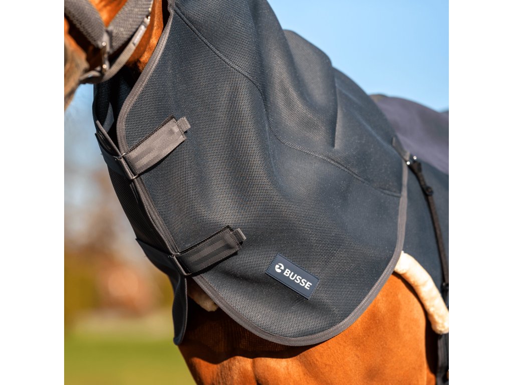 Krčný diel pasujúci k pracovným dekám 3D AIR, ktorý je ideálny na použitie pri tréningu. Inovatívny materiál 3D AIR DRY vďaka svojej štruktúre výrazne zväčšuje povrch a urýchľuje odvod vlhkosti, čím zaisťuje maximálne účinný odvod potu. Je skvelý aj pre kone s hustou srsťou, s tendenciou sa potiť alebo prehrievať, ale aj pre ostrihané kone v teplejšom počasí alebo počas prechodného obdobia. Krčný diel sa pripevňuje k deke pomocou pevného integrovaného systému suchých zipsov.