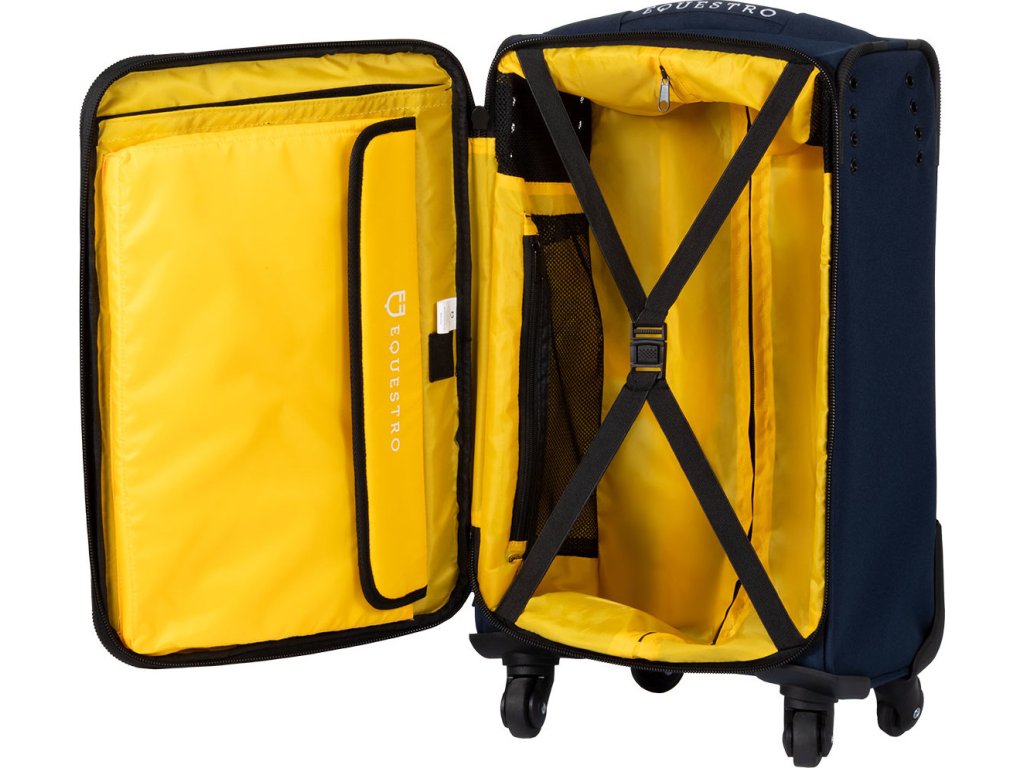 Cestovný kufor s kolieskami X Fise je spojením precízneho spracovania, kvalitných materiálov a elegantného vzhľadu. Vyrobený z odolnej technickej tkaniny, ktorá vyniká svojou pevnosťou a dlhou životnosťou, predstavuje ideálnu voľbu pre každého jazdca na cestách. Vďaka prepracovanému členeniu vnútorného priestoru a veľkej kapacite ľahko pojme všetky jazdecké potreby. Množstvo vnútorných aj vonkajších vreciek umožňuje prehľadnú organizáciu a rýchly prístup ku všetkému dôležitému. Zipsy sú vybavené ergonomickými silikónovými úchytmi, vďaka ktorým je otváranie a zatváranie jednoduché aj v rukaviciach.