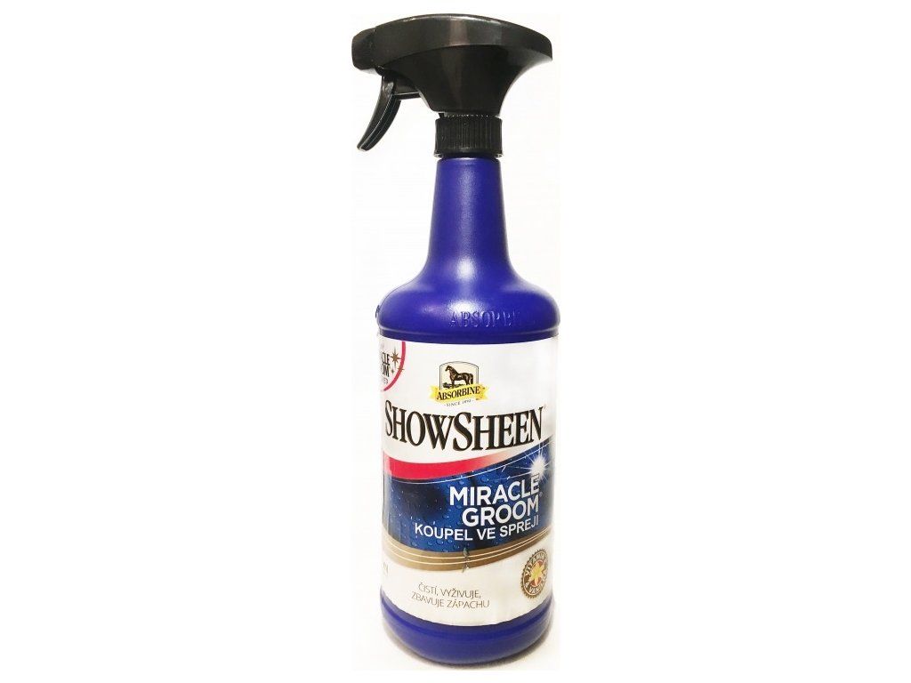 Absorbine Miracle Groom je prípravok 5 v 1, ktorý srsť koňa čistí, vyživuje, zbavuje zápachu, rozčesáva a rozpletá hrivu a chvost .Zároveň dodáva hodvábny lesk .To všetko pri veľmi jednoduchej aplikácii bez použitia vody - sprej je pripravený na použitie bez potreby prípravy alebo riedenia. Používanie bez vody je vhodné v zimných mesiacoch alebo na miestach, kde je doprava vody problematická. Je určený na čistenie celého tela alebo len znečistených oblastí či jednotlivých miest. Odstraňuje škvrny a rozjasňuje farbu. Môže sa používať aj vo vnútri na dekách alebo čistiacich nástrojoch na odstránenie statickej elektriny. Odporúčame pre kone, psy, ovce, lamy a kravy.