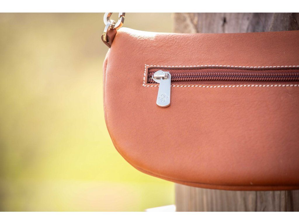 Kožená ľadvinka Smile od výrobcu Penelope je tohtoročným hitom. Možno ju nosiť cez rameno alebo na paži, čo oceníte najmä vtedy, keď potrebujete mať voľné ruky. Hlavné predné vrecko aj menšie zadné vrecko sú vybavené zipsom, takže svoje drobnosti uložíte bezpečne a prehľadne. Súčasťou je nastaviteľný nylonový ramenný popruh, ktorý môžete ľahko odopnúť pomocou dvoch karabín. Na prednej strane je zdobená vyrytým logom výrobcu.