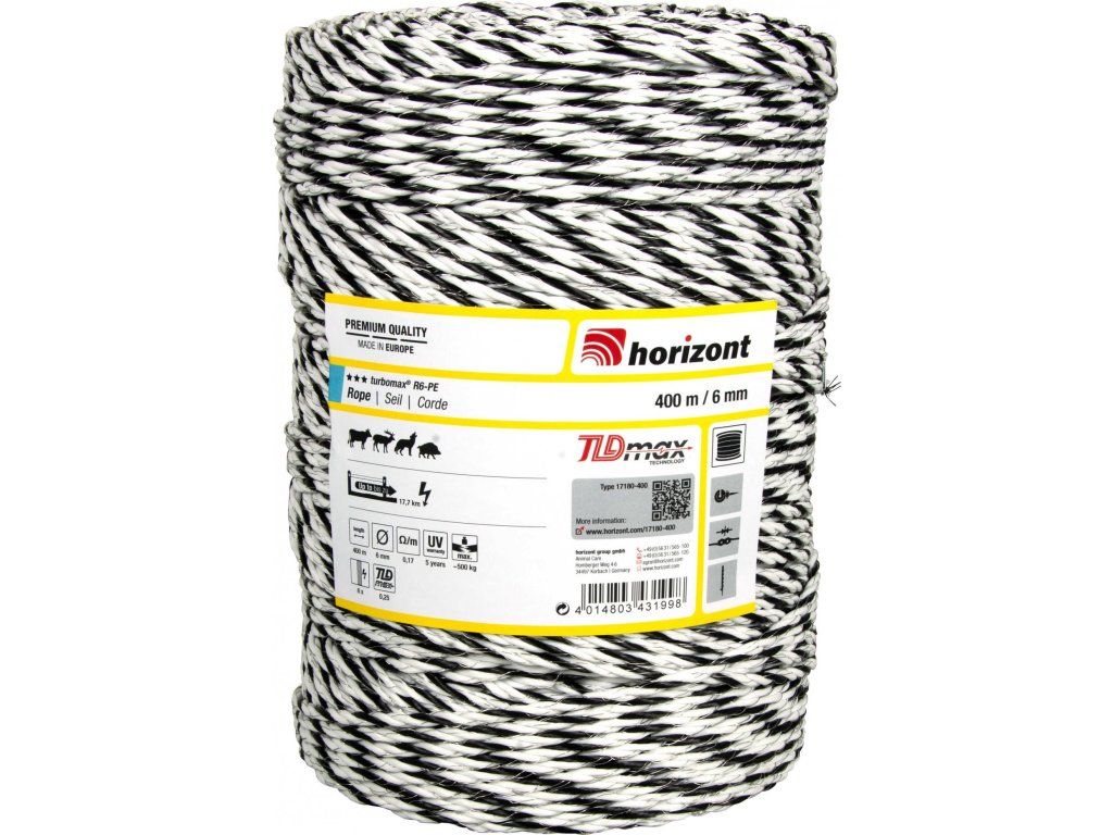 Lanko na elektrický ohradník Turbomax R6-PE Horizont, 400 m, 6 mm, biele/čierne