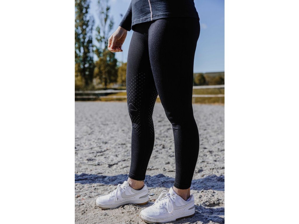Bezšvové jazdecké legíny z príjemného materiálu poskytujú výnimočnú voľnosť pohybu a maximálny komfort pri každej jazde. Vďaka plochým švom nedochádza k nepríjemnému treniu. Vysoký elastický pás zaisťuje spoľahlivú oporu, zatiaľ čo silikónový grip po celej dĺžke sedu zlepšuje priľnavosť v sedle.