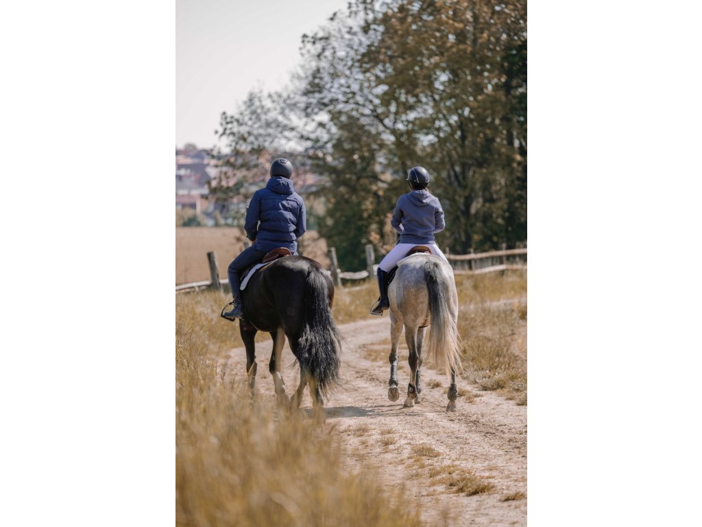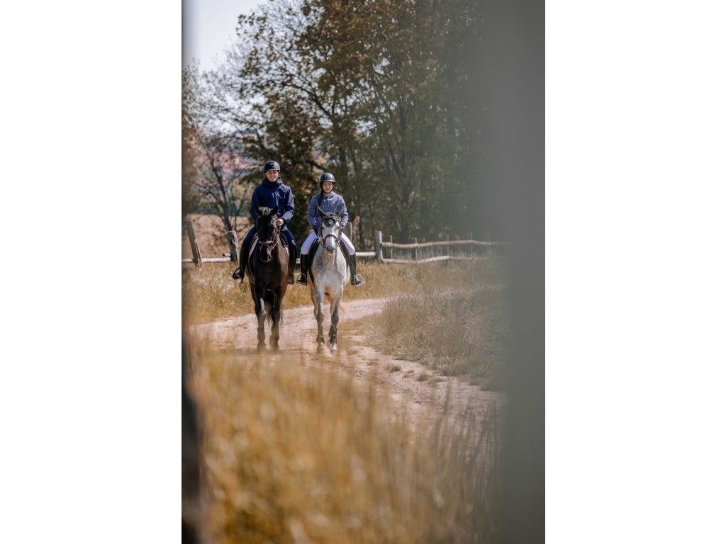 Tieto elegantné jazdecké legíny majú vysoký pás s pútkami na opasok a krásne tvarujú postavu. Silikónový grip po celej dĺžke sedu zaisťuje stabilitu v sedle, zatiaľ čo spodná časť nohavíc s lycrou ponúka maximálne pohodlie a jednoduché obliekanie. Sú navrhnuté tak, aby boli nielen funkčné, ale aj praktické, majú bočné vrecko na telefón a ozdobná zadná chlopňa pridáva na štýle. Pružná a priedušná tkanina s rýchloschnúcimi vlastnosťami sa dokonale prispôsobí pohybu a zaistí komfort pri každodennom jazdení.
